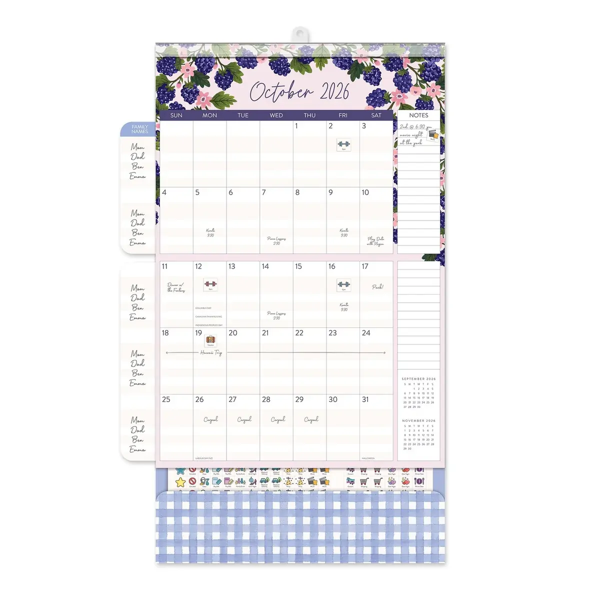 Manage even the busiest schedule with the easy-to-use Do It All Calendar from Orange Circle Studio. Write up to five family members' names on the fold-out wings to keep track of everyone's important events throughout the year, and store receipts, tickets, and more in its handy pocket. Includes more than 300 stickers to mark holidays, appointments, and other important dates. With a strong magnetic hanger, you can mount this cute calendar on any magnetic surface such as your fridge or filing cabinet, or use the traditional nail hanger to hang on any wall space.