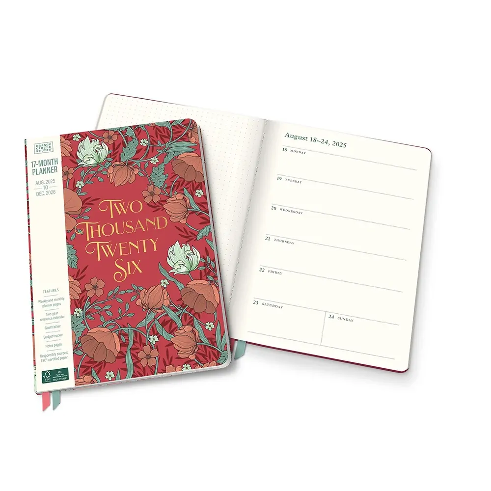 2026 17-Month Planner Orange Circle Clara Cloth Bound 152x216mm Monthly/Weekly Age of Romance, ACCO 26550