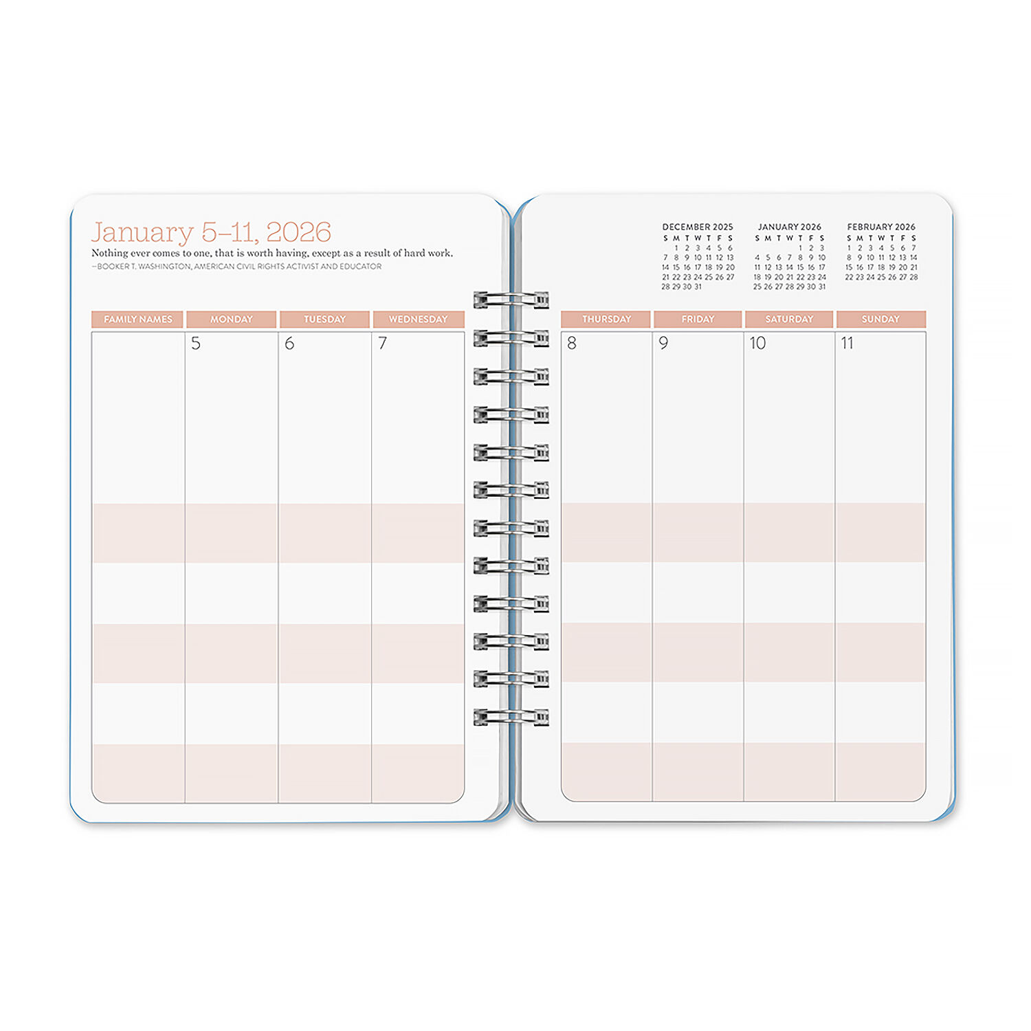 This best-selling planner from Orange Circle Studio keeps even the busiest person organized and on track. Enjoy spacious weekly planner pages that include room for six family members; year, monthly, and weekly views; an inspirational weekly quotation; and appointment and holiday stickers. Keep your finances in check with the easy-to-use budget tracker, and jot down your tasks and essentials on tear-off lists and grid notes pages. Featuring cheerful cover art and a sturdy pocket.