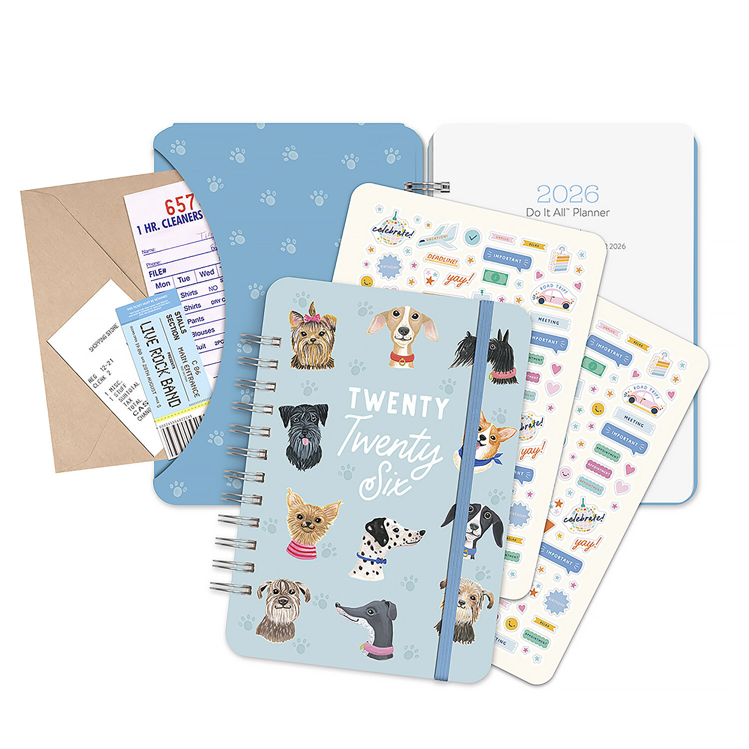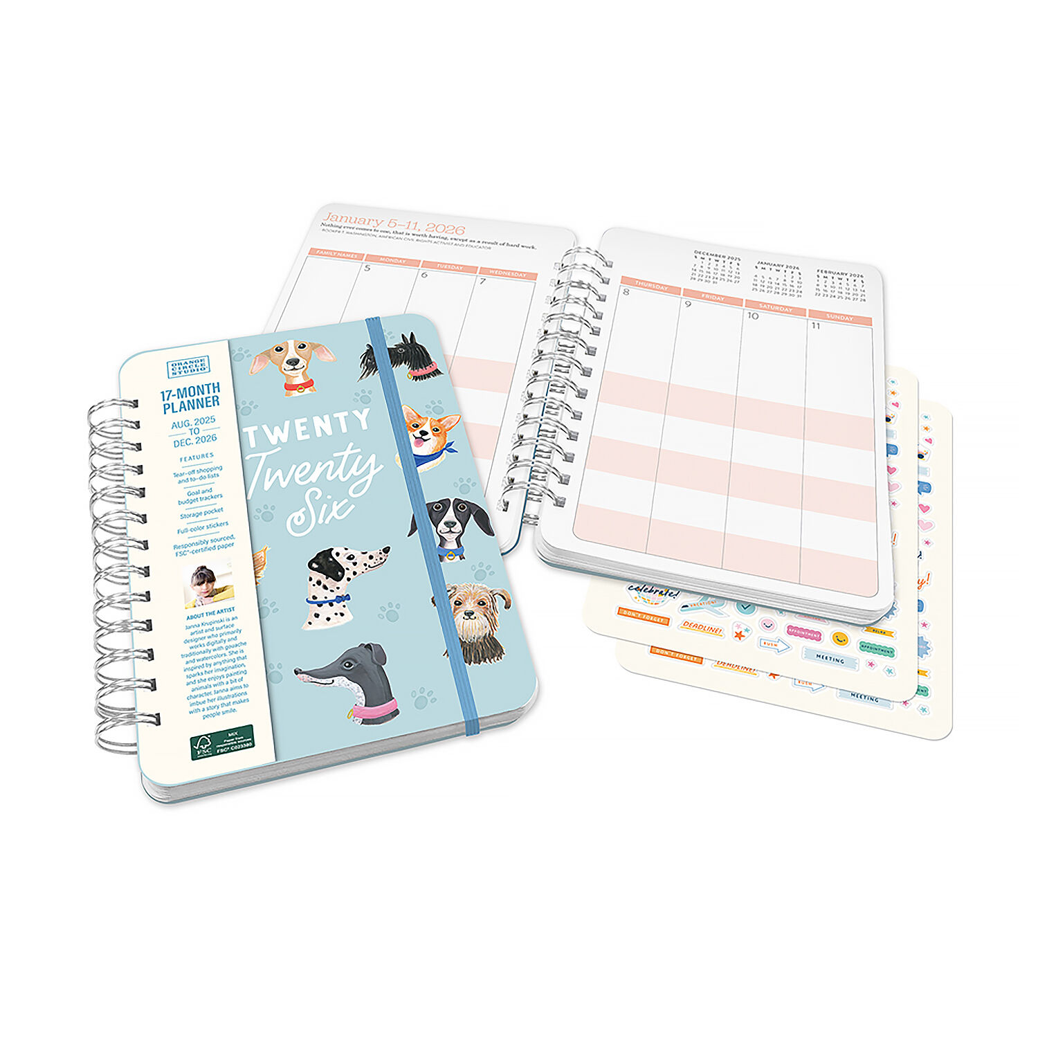 2026 17-Month Planner Orange Circle Do-It-All A5 Week to View Doggone Cute, ACCO 26335