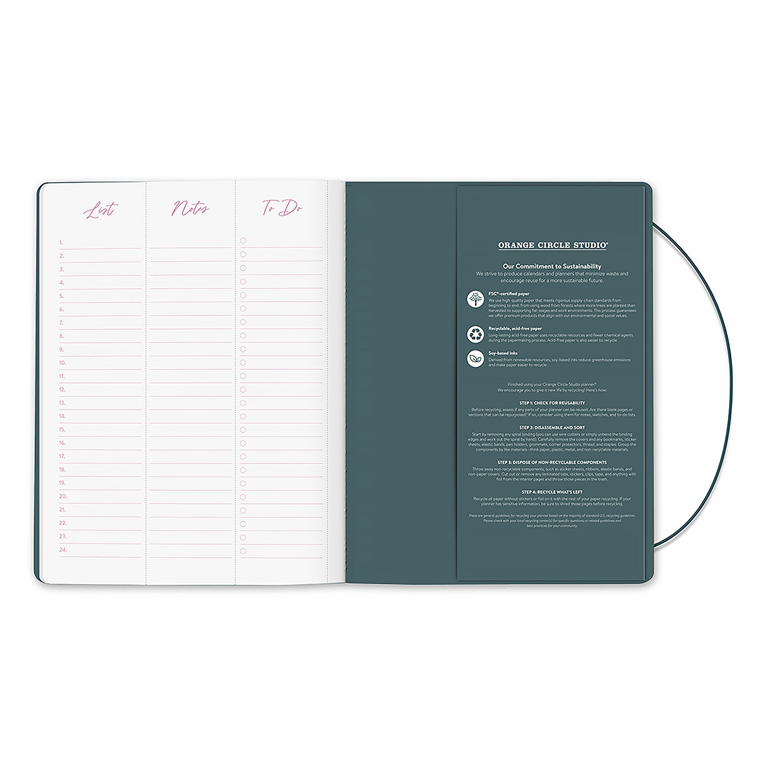 Enjoy maximum style in a slim, attractive package with Orange Circle Studio's Just Right Monthly Planner. This planner boasts full-color illustrations throughout and thick, high-quality paper for keeping track of appointments, meetings, birthdays, and other important events. Use the tear-out lists and sturdy back pocket while running errands, brainstorming ideas, and keeping track of all of life's little details. A 17-month reference calendar and three-year holiday list help you stay organized.