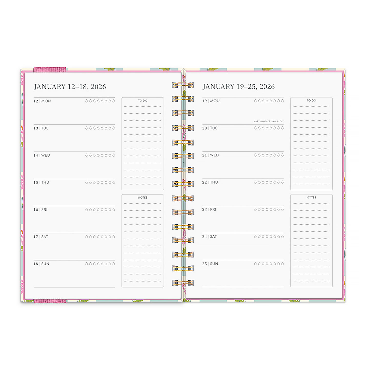 - Includes goal, budget, and hydration trackers, plus space for notes and to-do lists