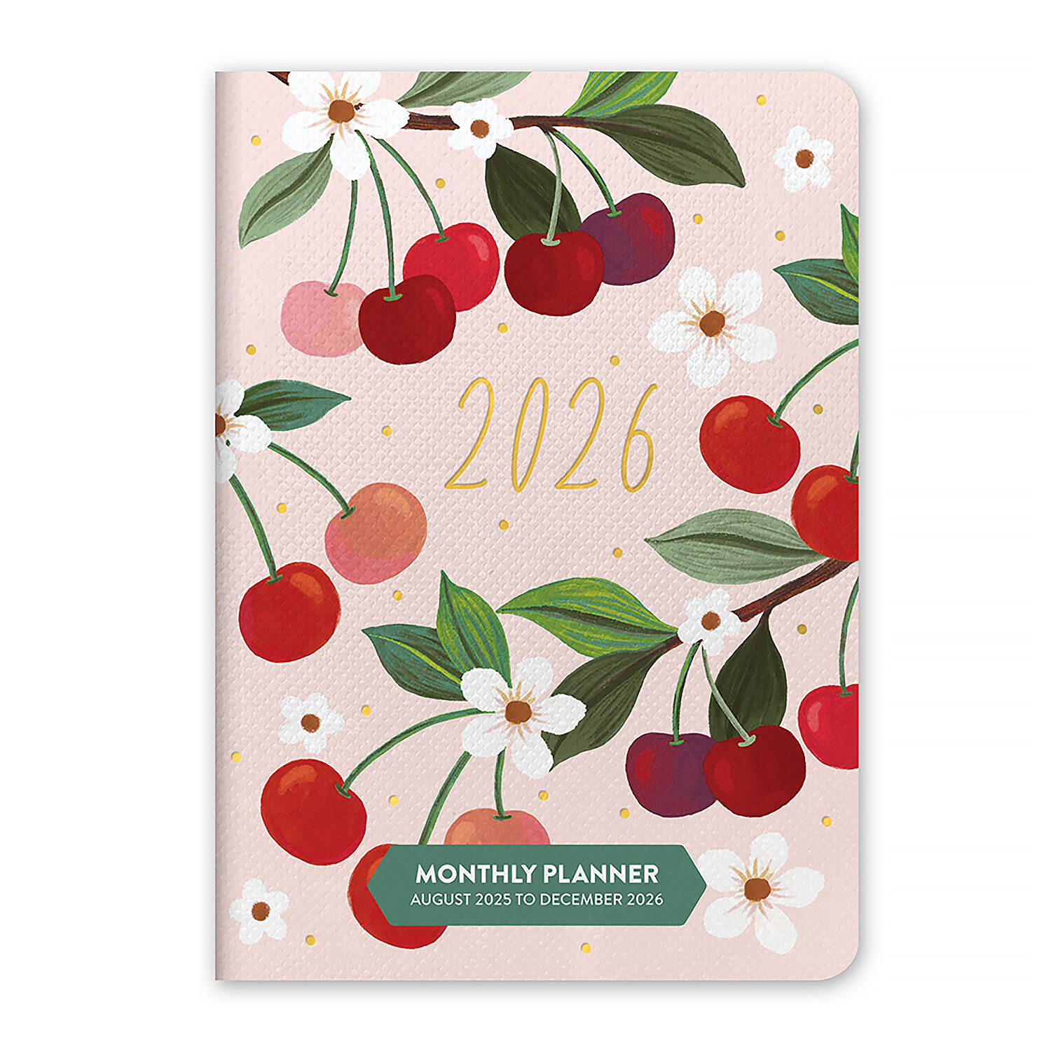 2026 17-Month Planner Orange Circle Pocket 114x165mm Month to View Fruit & Flora, ACCO 26371