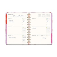 - Three tabbed dividers with pockets that separate monthly views, weekly views, and notes pages