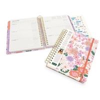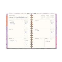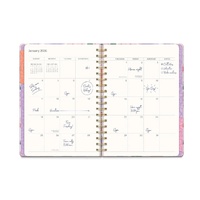 - Three tabbed dividers with pockets that separate monthly views, weekly views, and notes pages