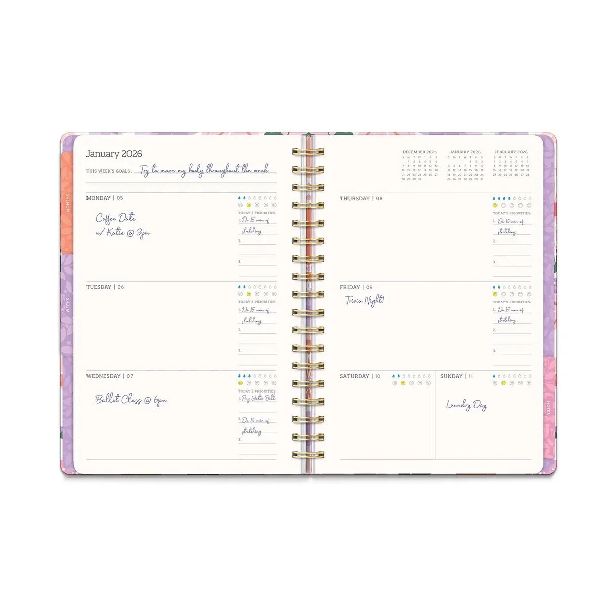 2026 17-Month Planner Orange Circle Tri-Tab 178x244mm Week to View Secret Garden Spiral, ACCO 26501