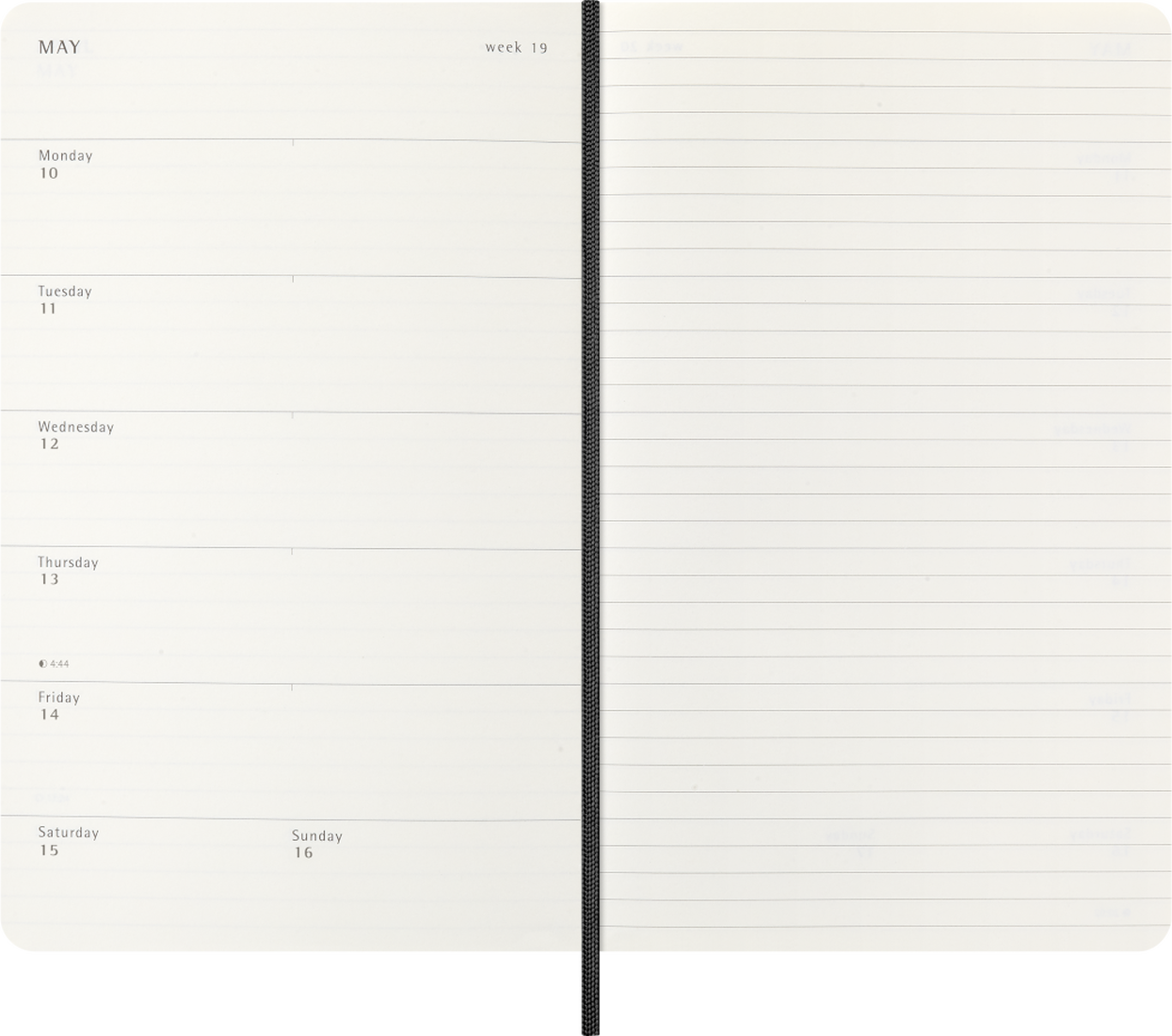 - Format: Weekly Notebook (days of each week on one side, a ruled page for tasks and notes on the other)