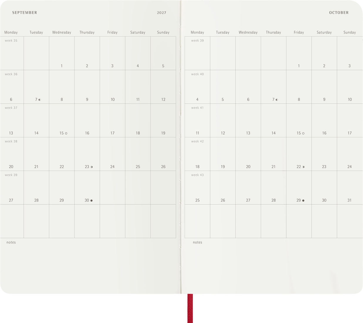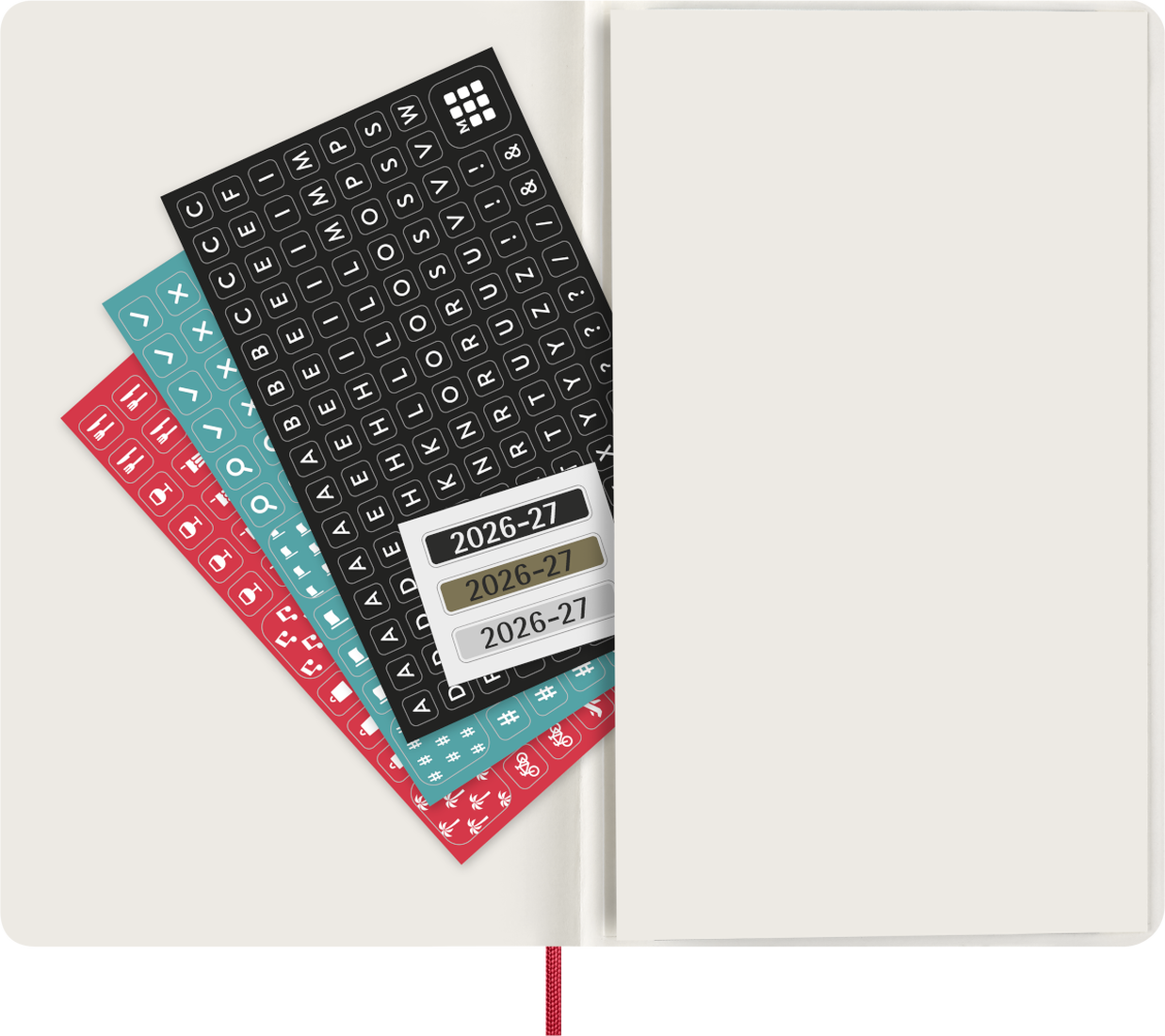 Dated from July 2026 to December 2027, the Moleskine 18-Month Weekly Planners let you see the whole week at a glance. This planner is also part notebook: each double-page spread shows the days of the week on the left opposite a ruled page for handwritten tasks and ideas. This format allows you to take notes alongside the week's plans, perhaps jotting down a to-do list, key reminders, and all the random thoughts that come to mind as you plan your time. Yearly and monthly snapshot pages provide a broader overview, alongside dedicated space for travel planning, ideas and goals. Like all Moleskine planners, it includes stickers to personalise your pages, plus year stickers for the spine.