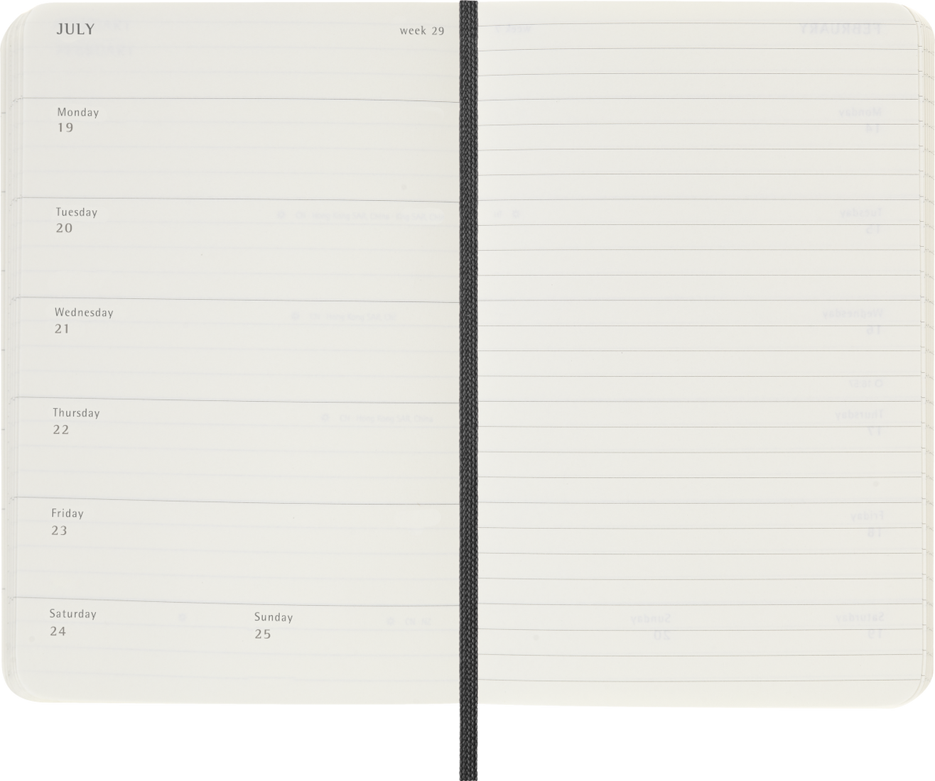 - Format: Weekly Notebook (days of each week on one side, a ruled page for tasks and notes on the other)