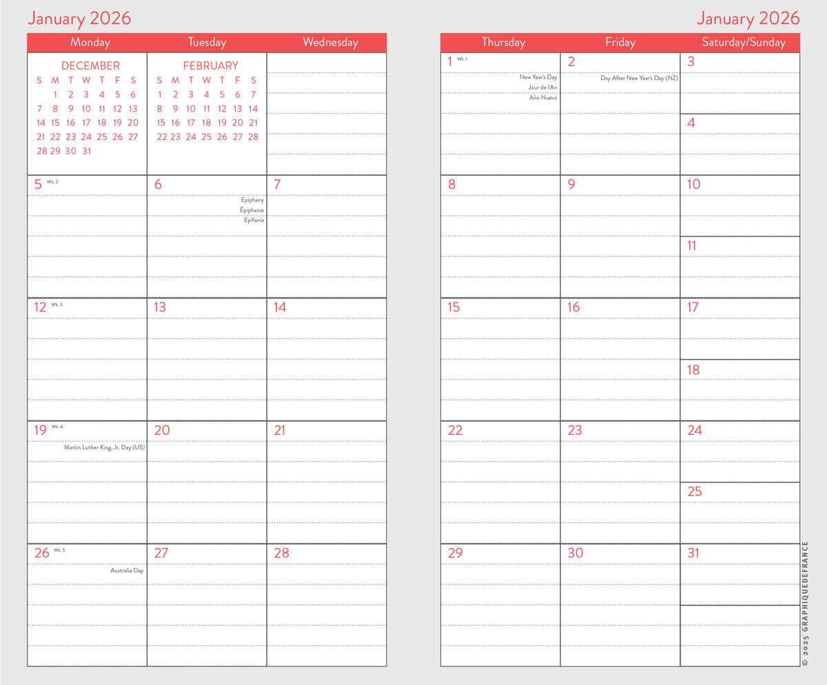 2026-2027 2-Year Planner Elegant Pattern Pocket Month to View, Graphique de France GF45084