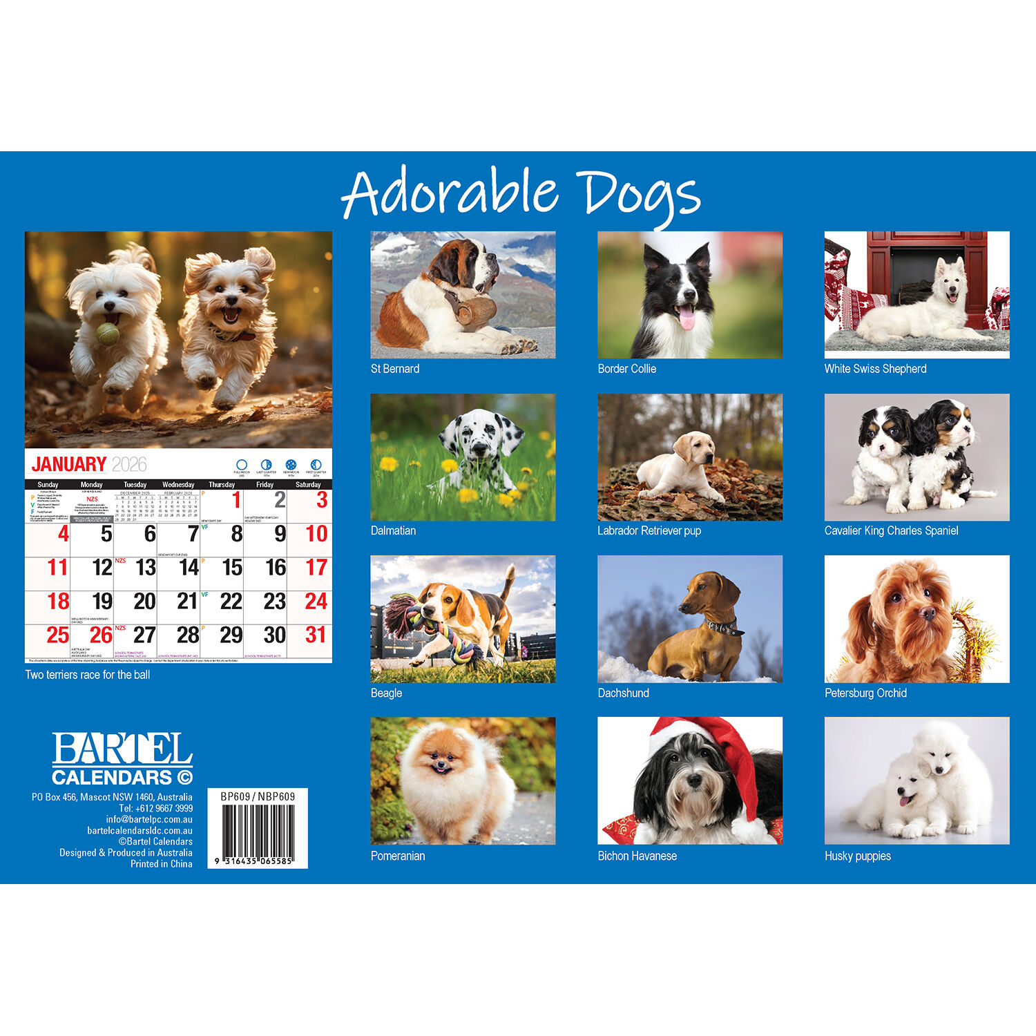 2026 Calendar Big Print Adorable Dogs Horizontal Wall, Bartel BP609
