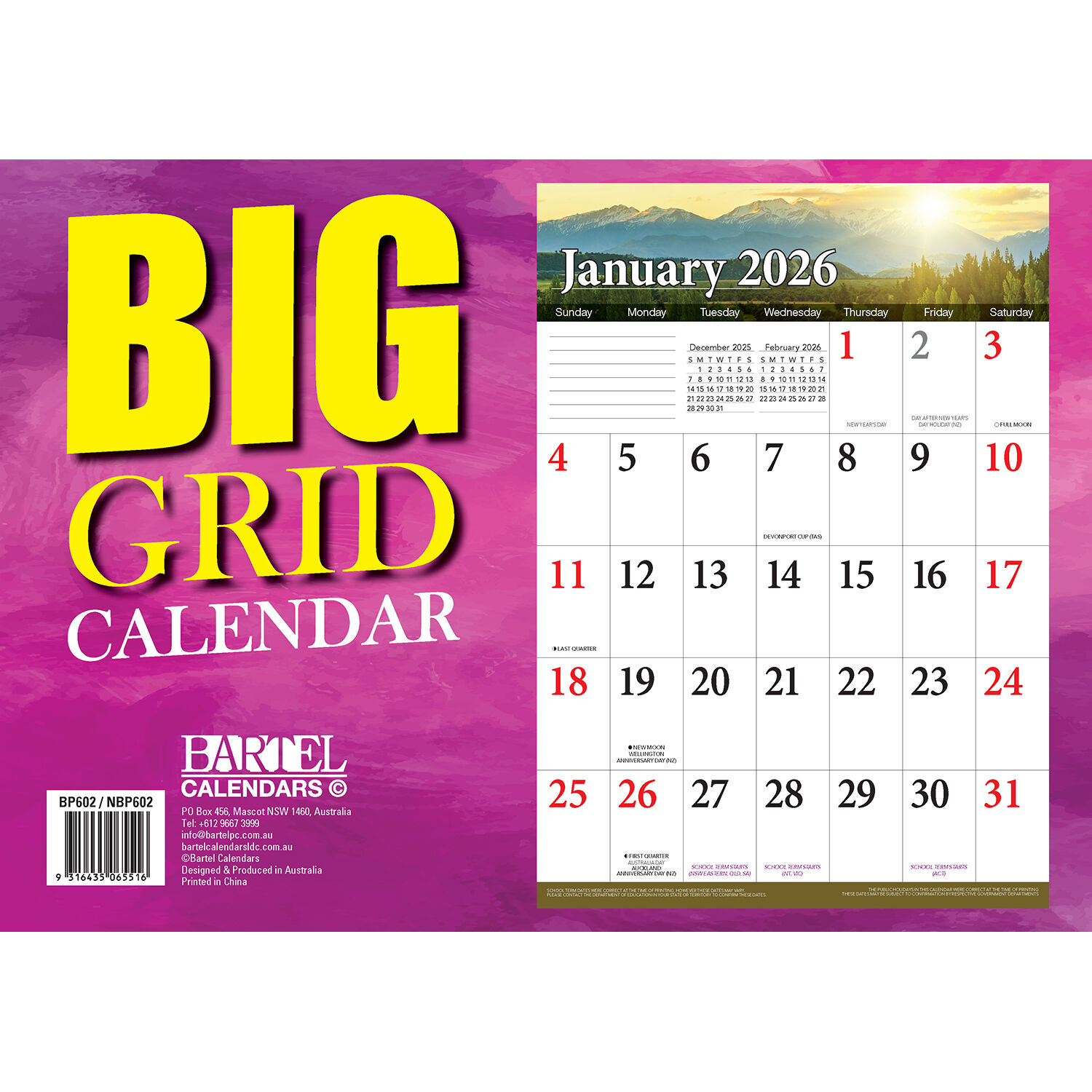 2026 Calendar Big Print Big Grid Horizontal Wall, Bartel BP602