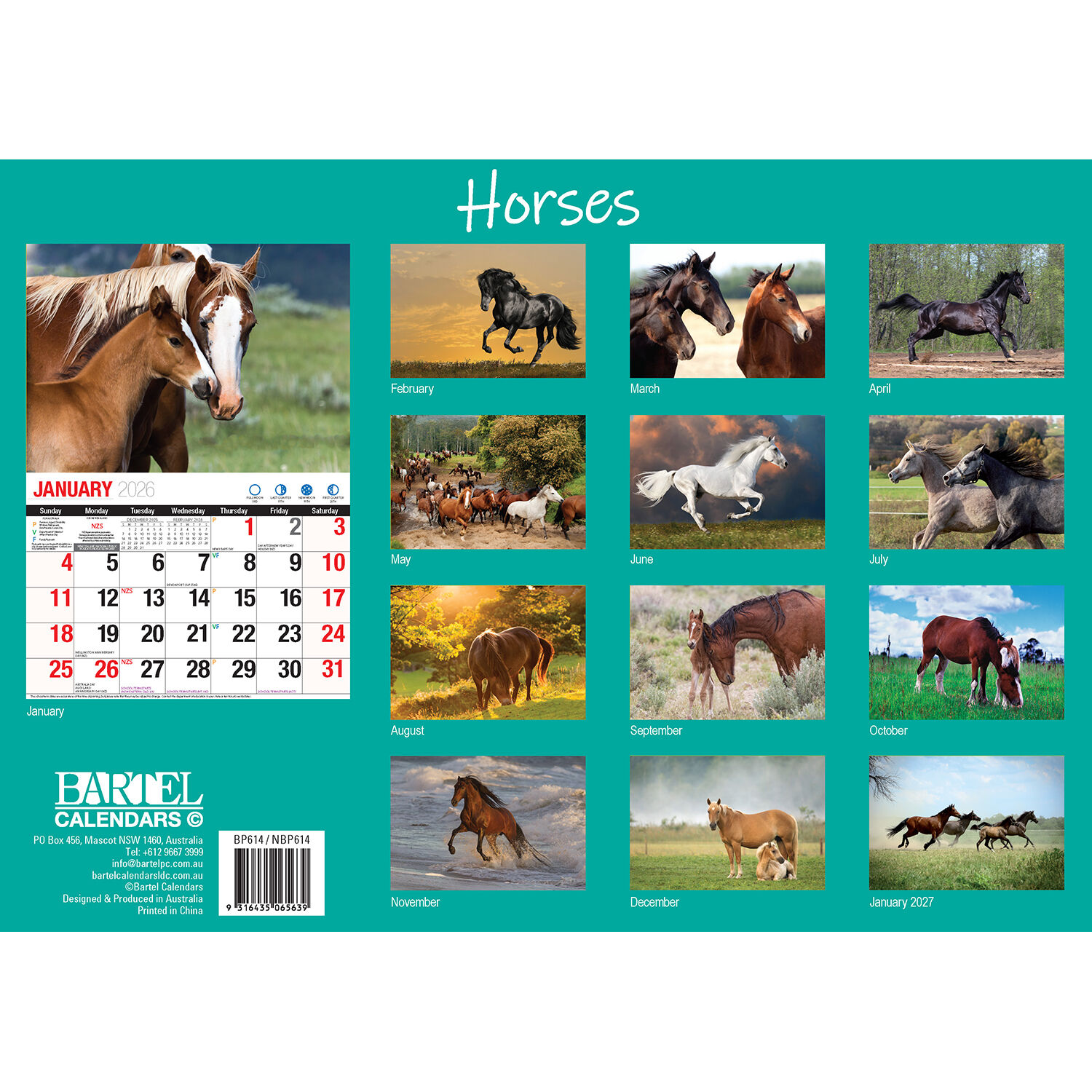 2026 Calendar Big Print Horses Horizontal Wall, Bartel BP614