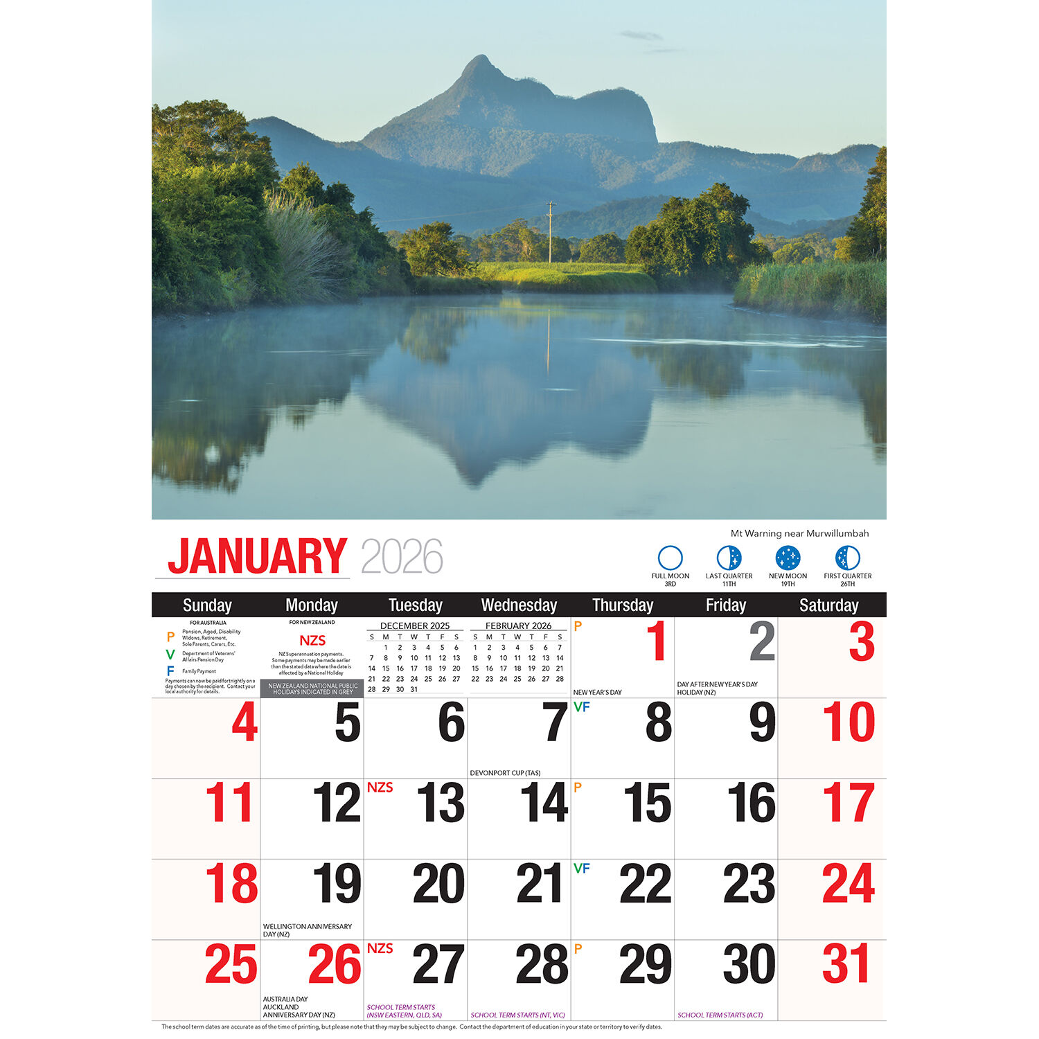 Bartel 2026 Big Print Calendar Northern New South Wales