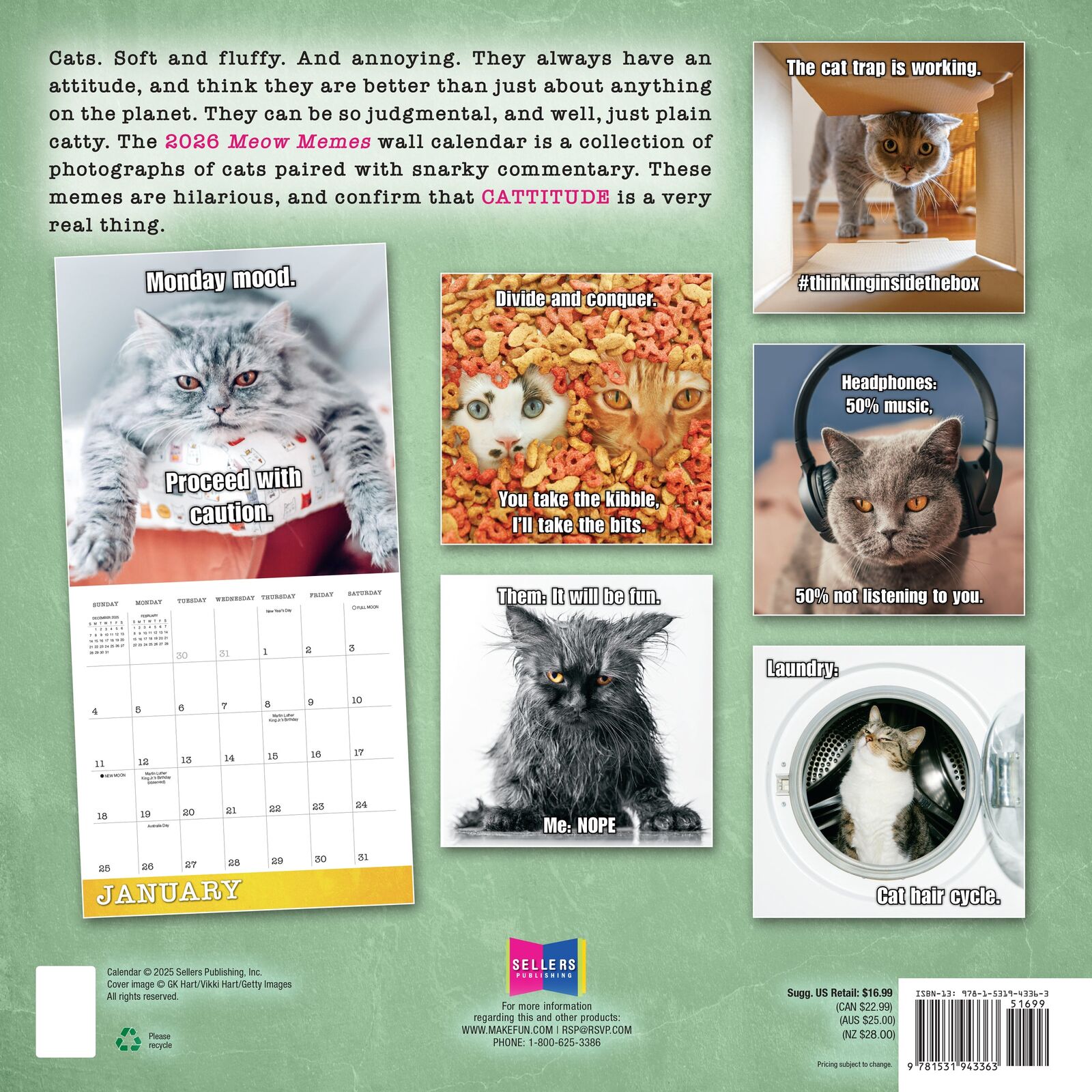 Cats. Soft and fluffy. And annoying. They always have an attitude, and think they are better than just about anything on the planet. They can be so judgmental, and well, just plain catty. The 2026 Meow Memes wall calendar is a collection of photographs of cats paired with snarky commentary. These memes are hilarious, and confirm that CATTITUDE is a very real thing.