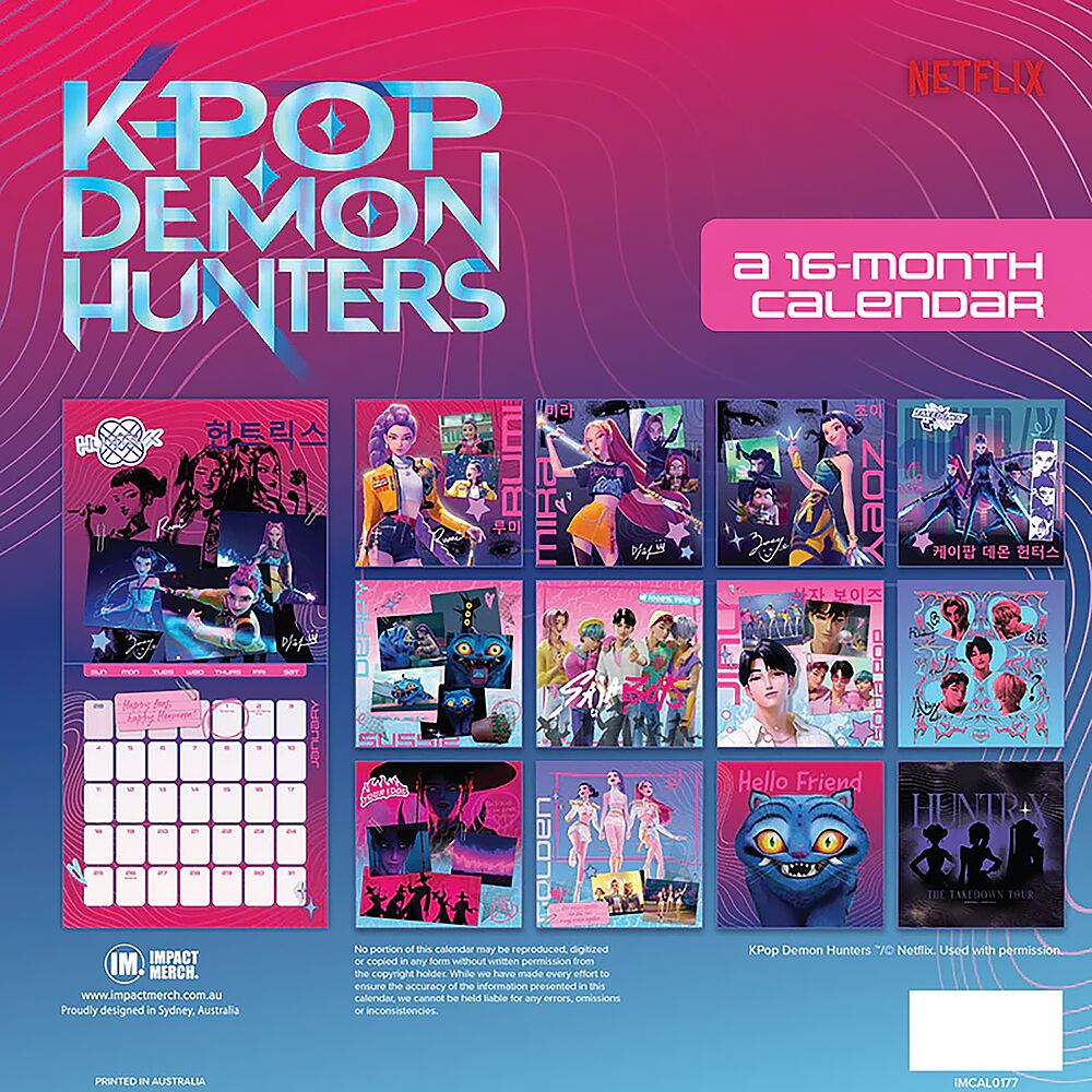 2026 Calendar Netflix Official K-Pop Demon Hunters 16-Month Square Wall, Impact Merch I91601