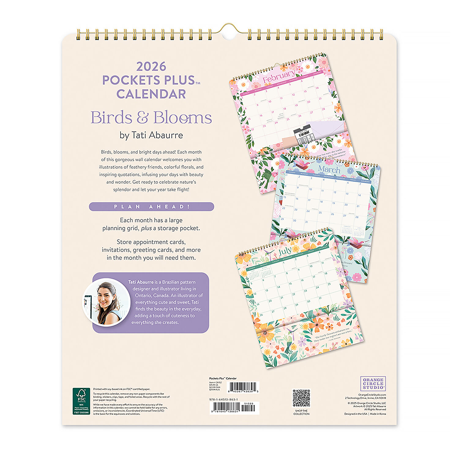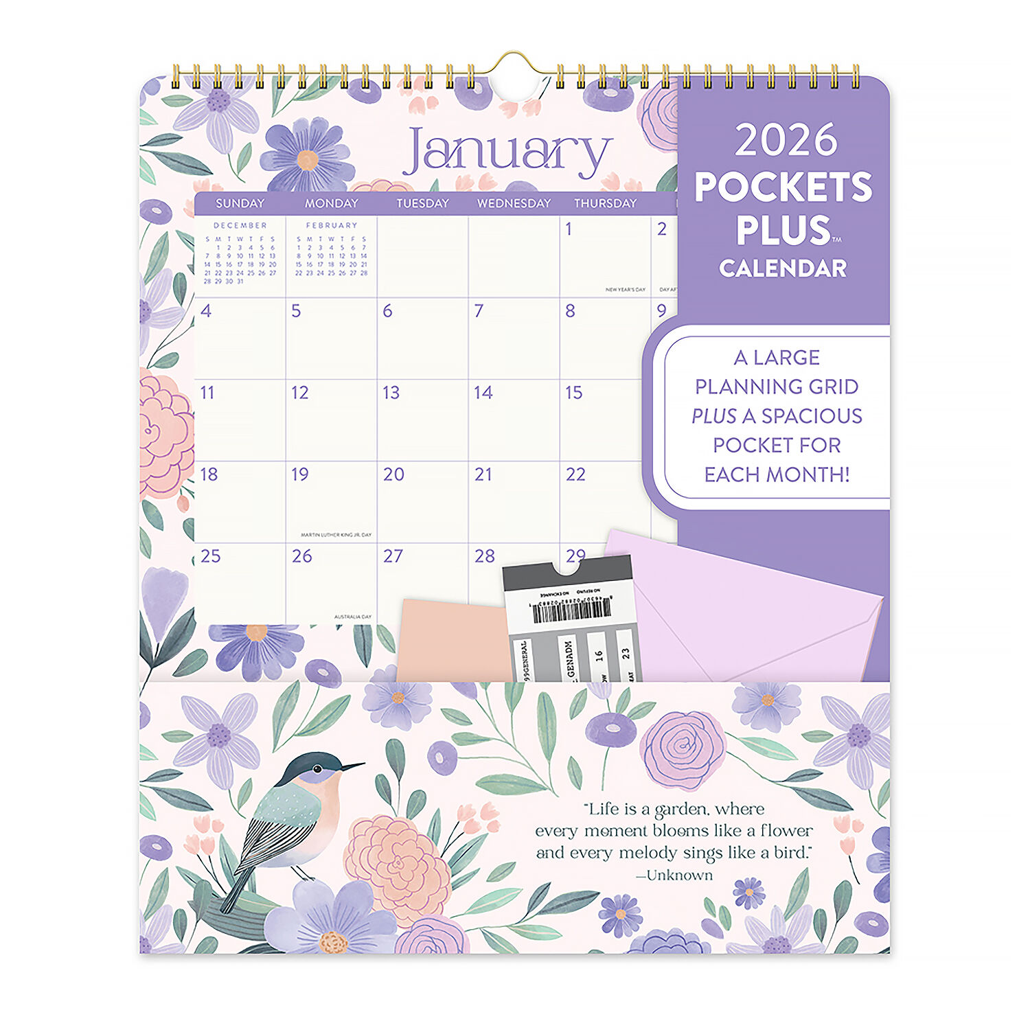 Stow that special birthday card, concert ticket, or appointment card exactly where and when you need it with Orange Circle Studio's Pockets Plus Calendar. Each month features a roomy pocket to fit important items plus cheerful artwork to brighten your space year-round.