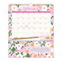 2026 Calendar Orange Circle Pockets Plus 297x348mm Wiro Wall Birds & Blooms, ACCO 26152