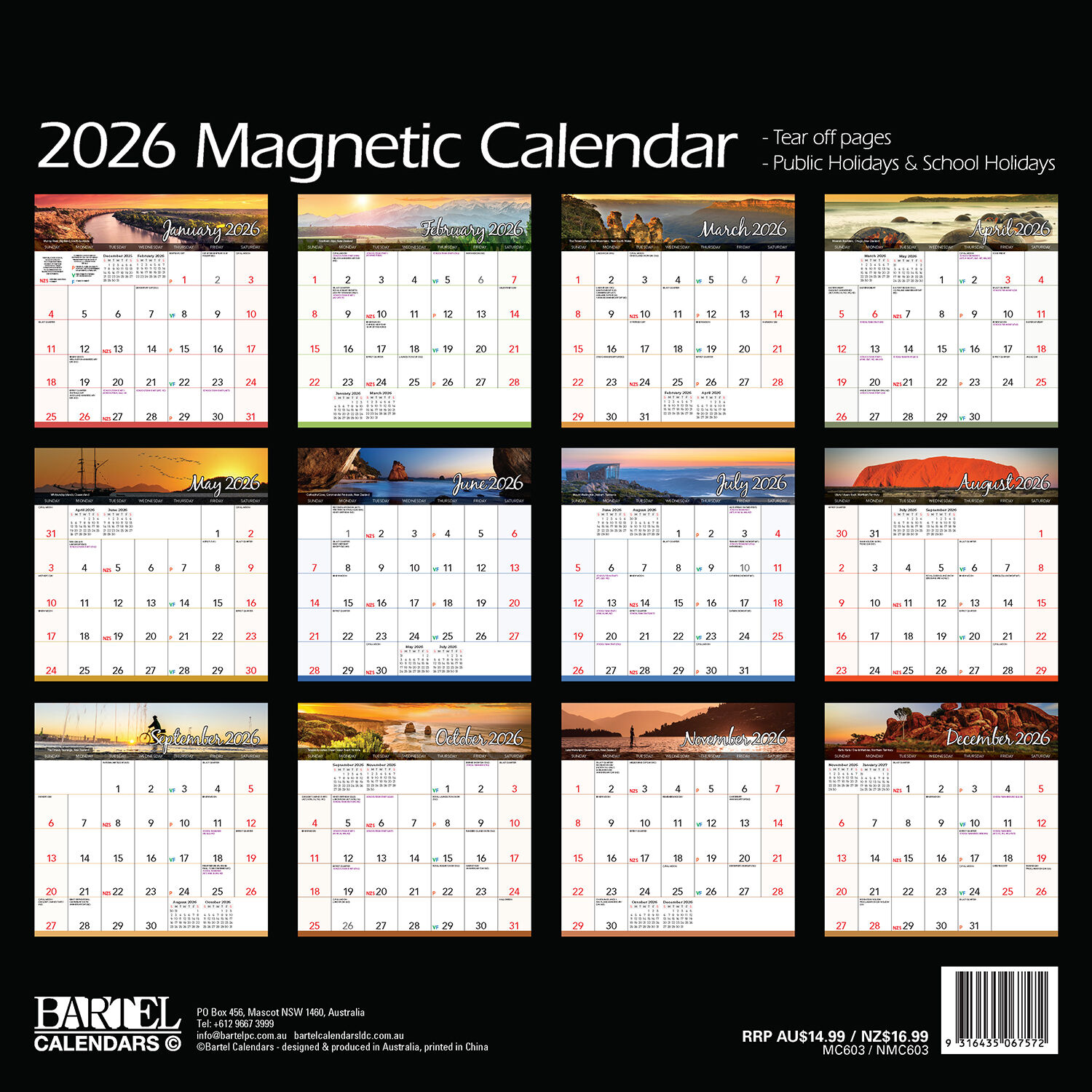 Bartel 2026 Magnetic Calendar Sunrises & Sunsets