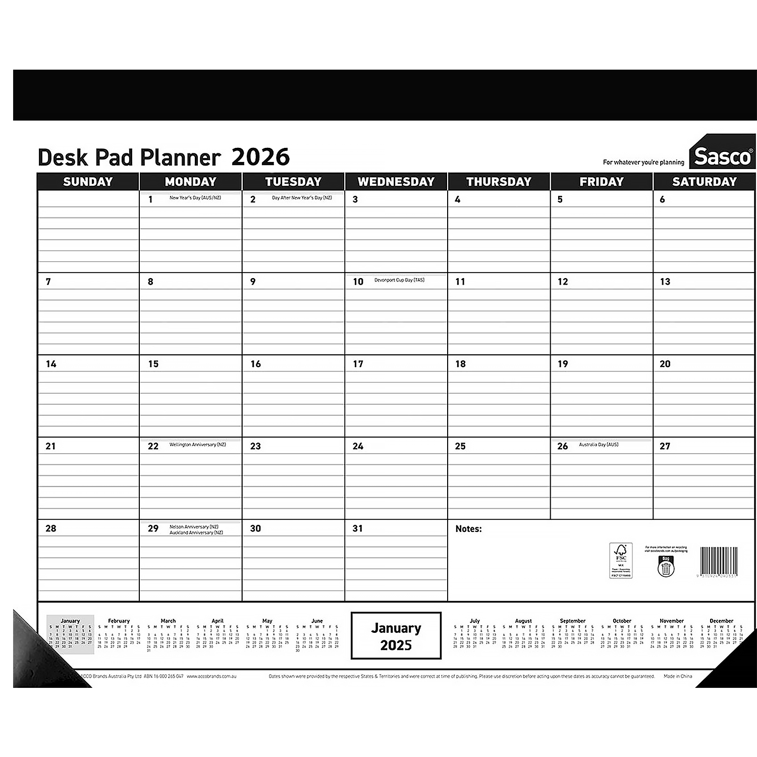 Keep up to date and in control of your planning with this Sasco 2026 Desk Pad Planner. Sasco Desk Planners are known for their quality and usability, the perfect addition to your home or office when you need a reliable aid to plan your year ahead. All Sasco items are FSC certified, using materials that are responsibly sourced.