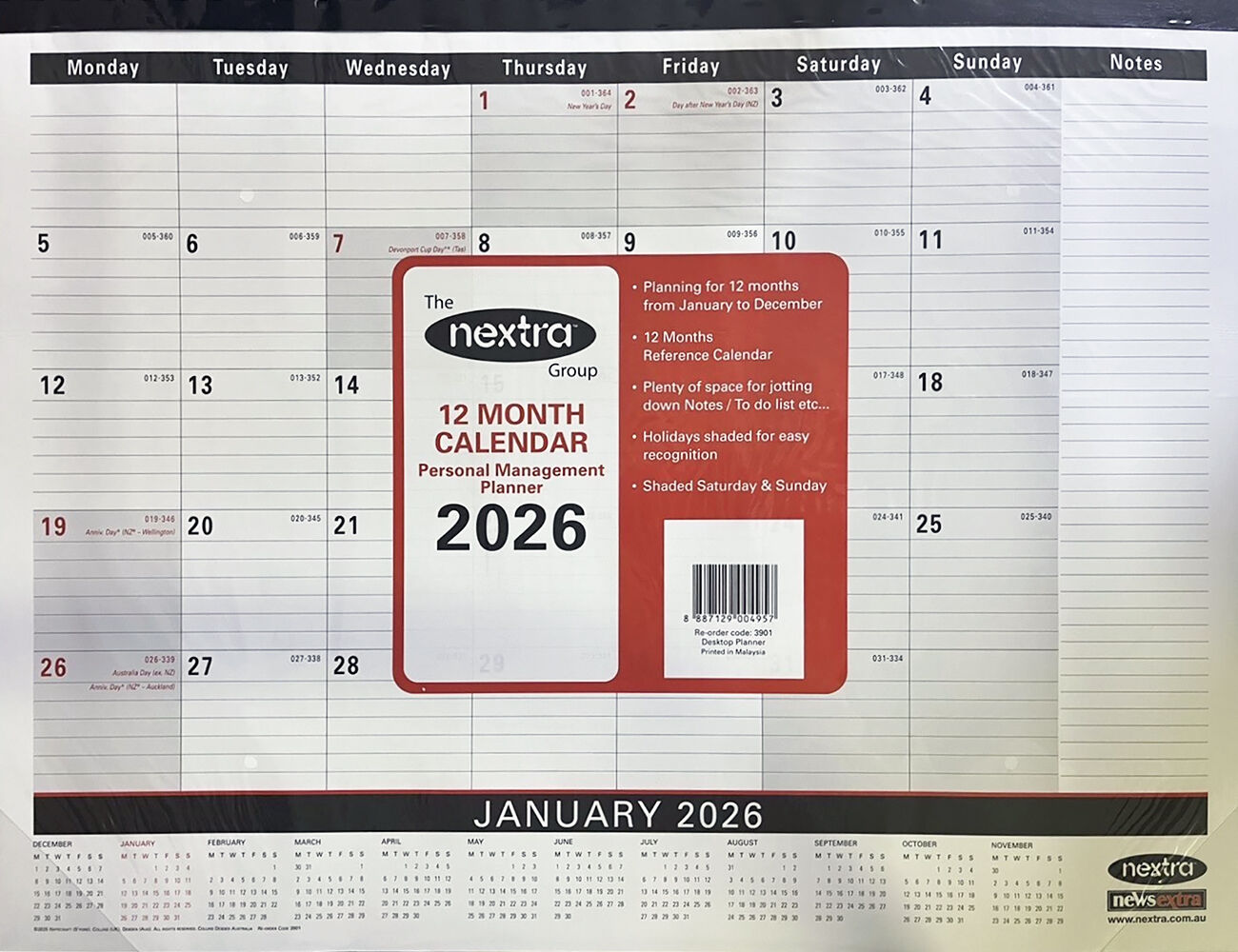 2026 Desktop Planner Nextra 56x43cm Month to View White NX3901.C59