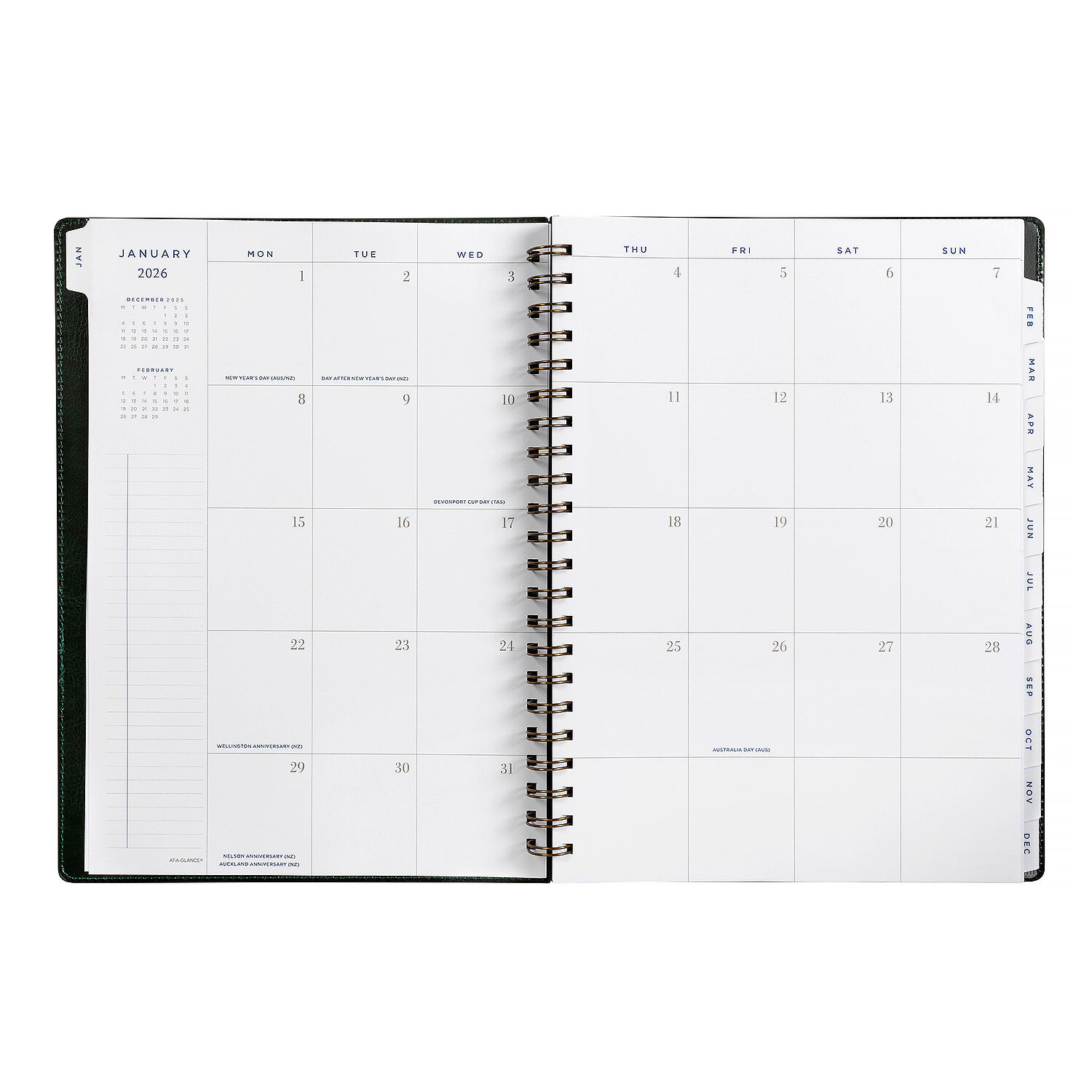 The AT-A-GLANCE Signature planner range offers unique gender-neutral cover materials paired with antique bronze twin wire binding to give a sophisticated look. Featuring stylish embossed and foil-printed covers with stitched edges to add an elegant look.