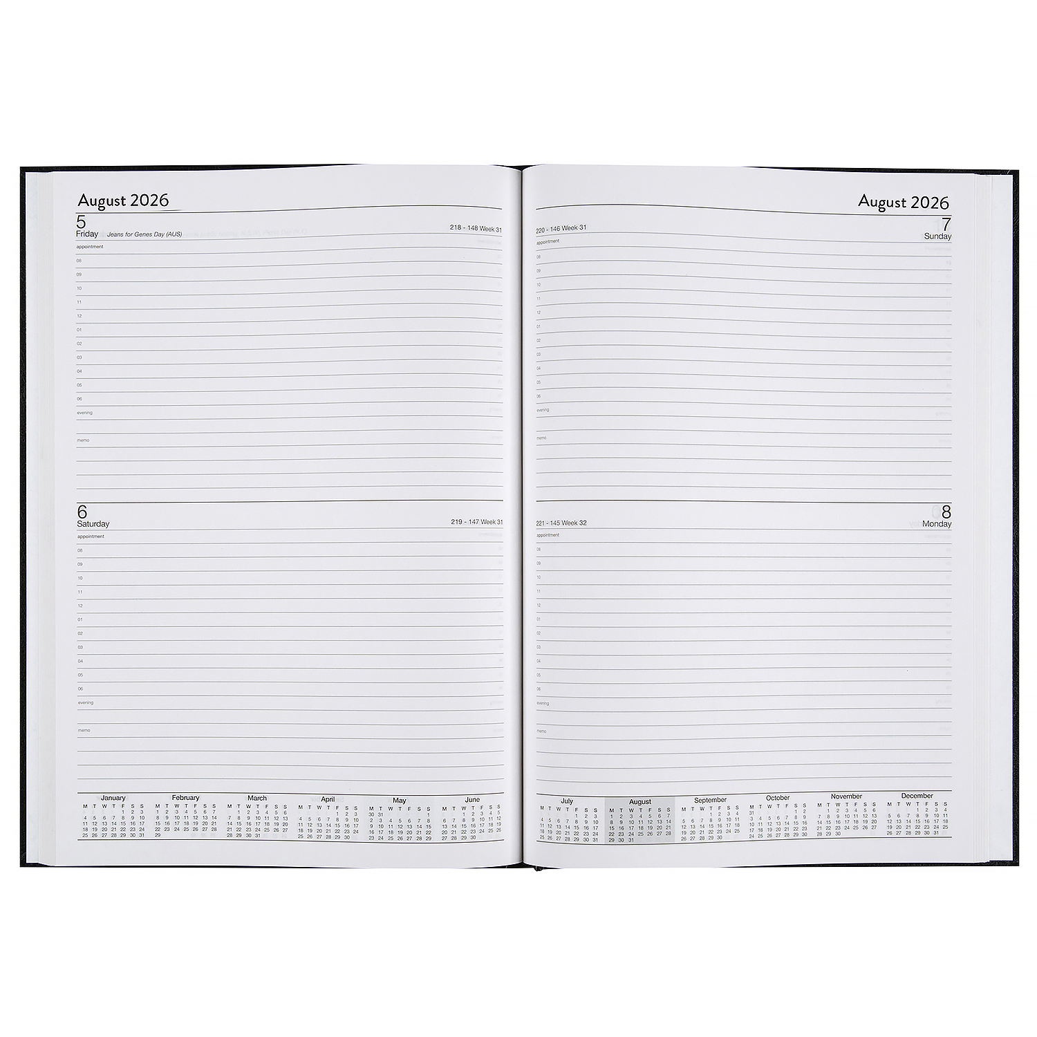Cumberland's Classic range of desk diaries combine the elegance of fine white paper with a traditional casebound, hard cover, leatherette look.