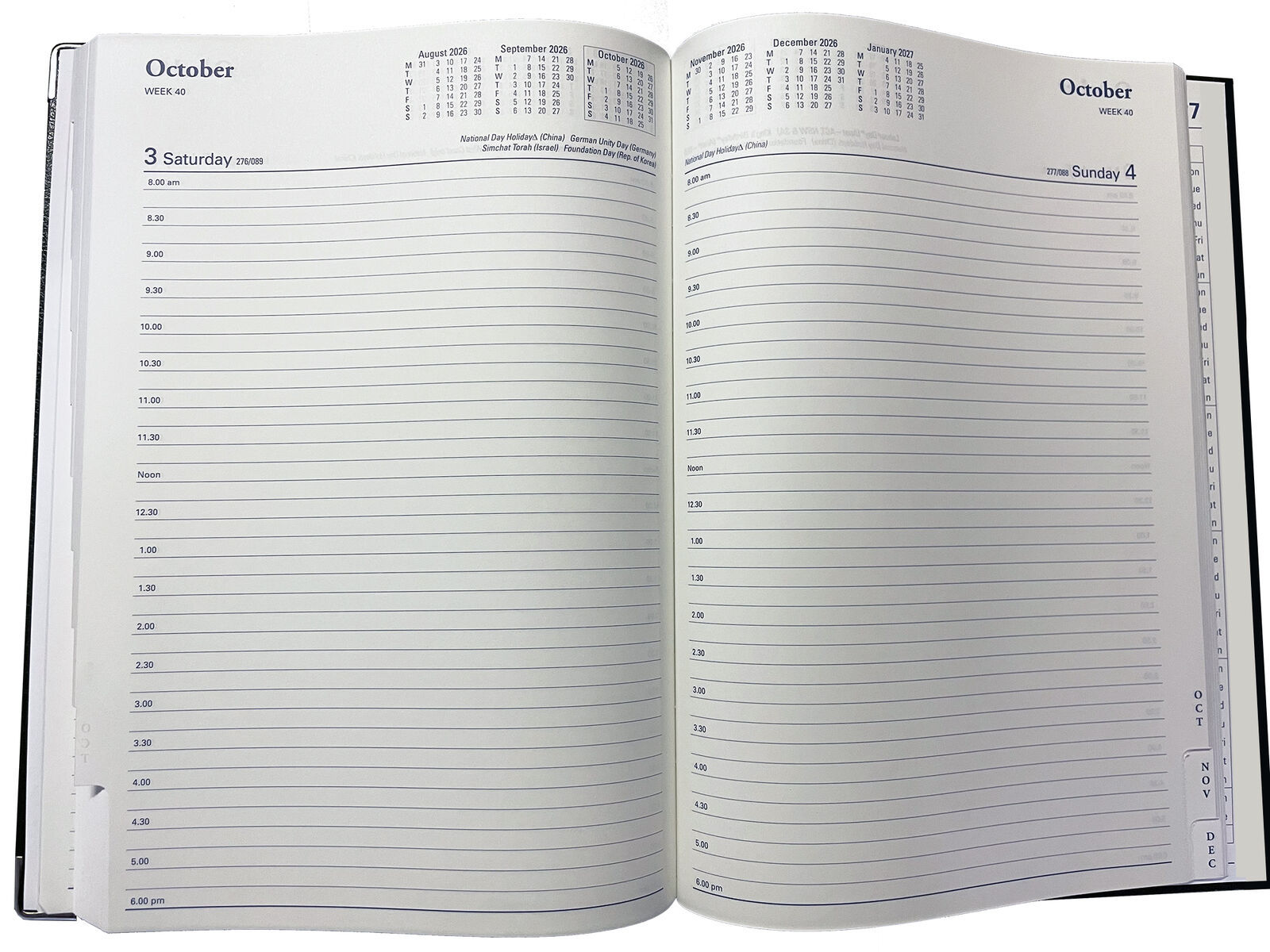 - Format: Day to Page (8am to 6pm, 1/2-hourly)