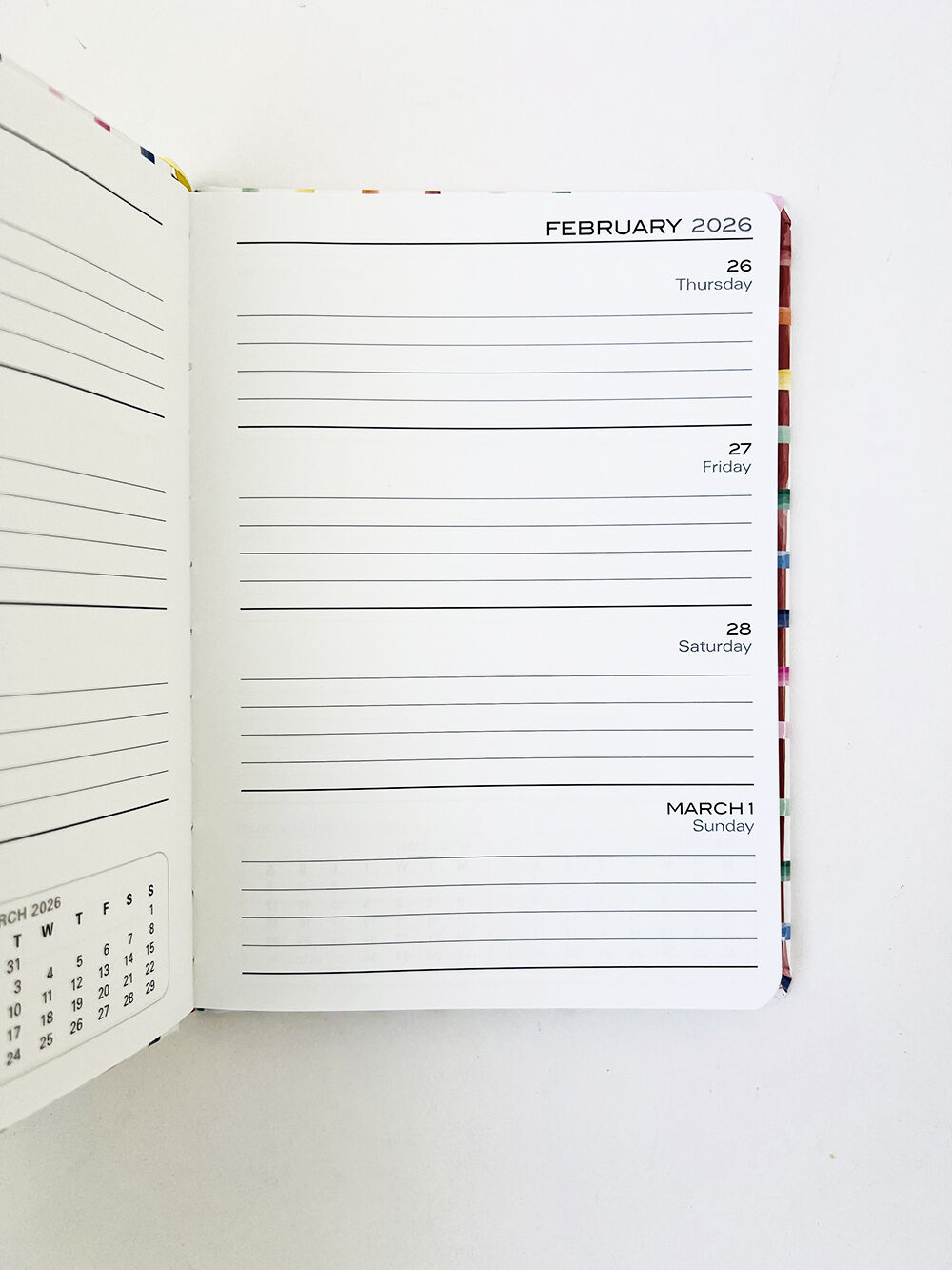 This A5 diary is the perfect size for your desk or home. Available in a stylish hard cover, the week runs from Monday to Sunday with extra room for weekend plans!