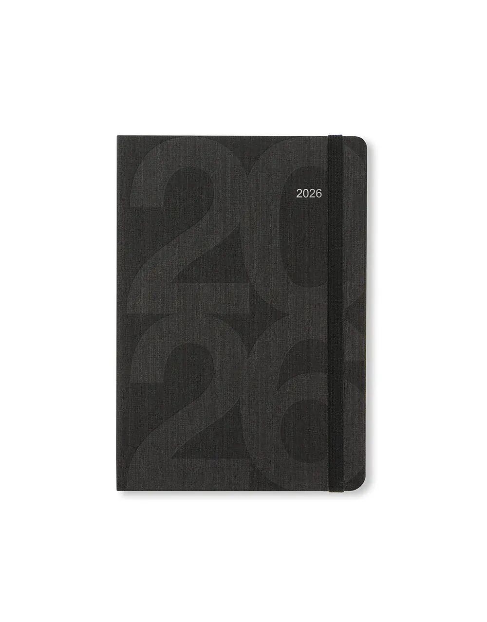 A classic with a twist; this hard case bound diary includes a sophisticated linen-textured cover, with a subtle blind debossed and silver foil date motif.