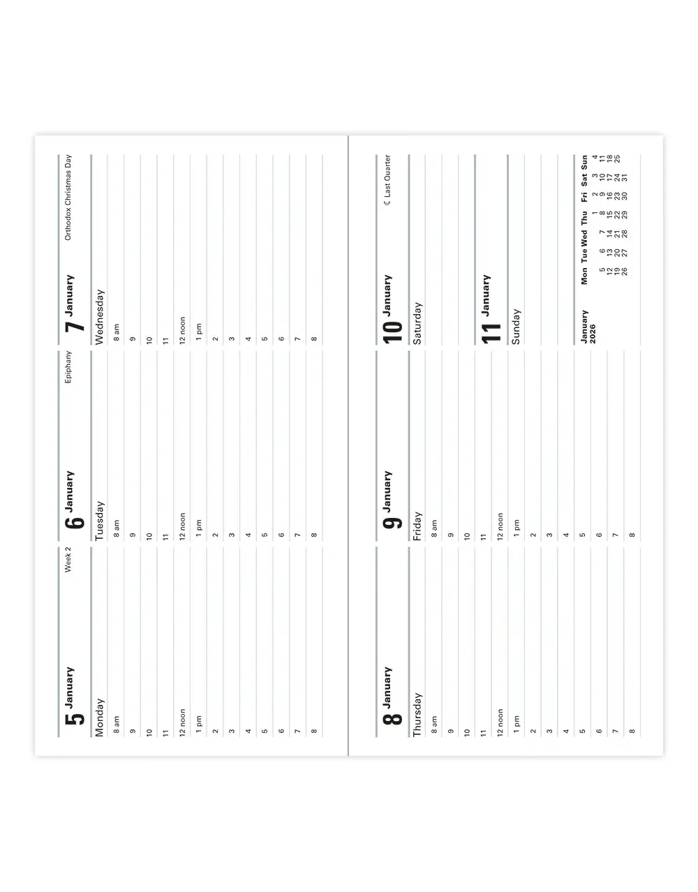 2026 Diary Letts of London Classic Slim Week to View Landscape Vertical w/ Appointments Dark Blue T35SBL