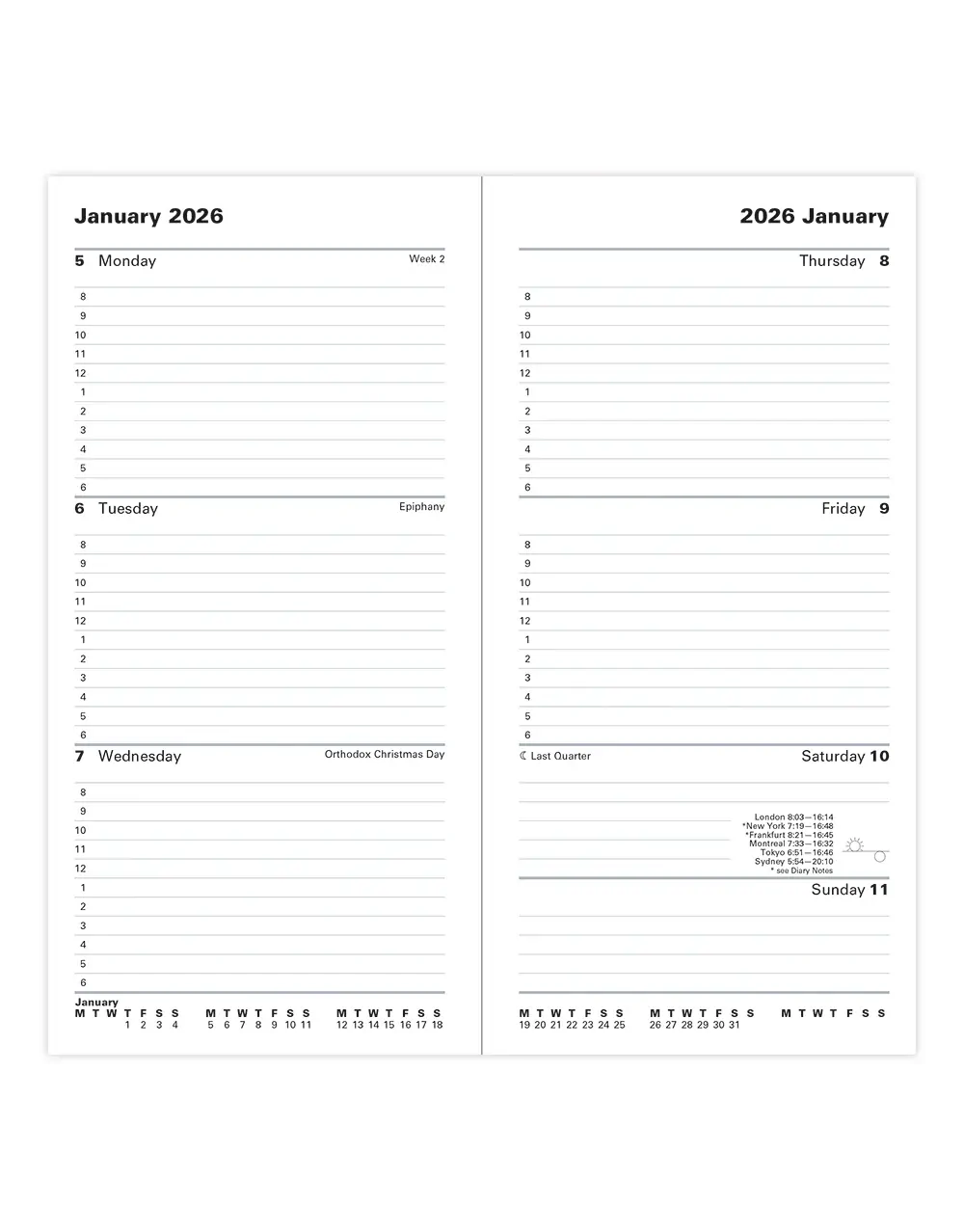 - Format: Week to View with Appointments- Classic diary style