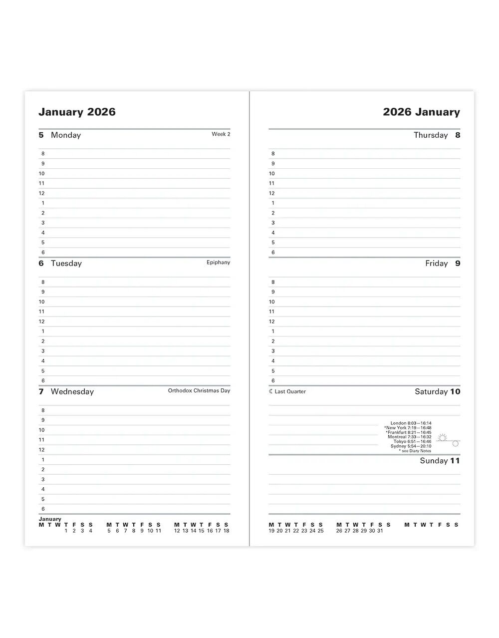 - Format: Week to View with Appointments- Classic diary style