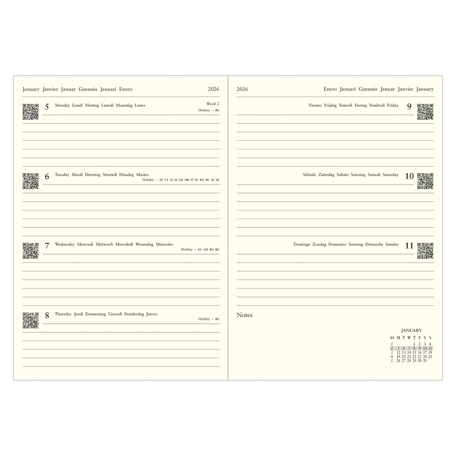 - Page Size (Dimensions W x H): A5 (14.8 x 21cm)