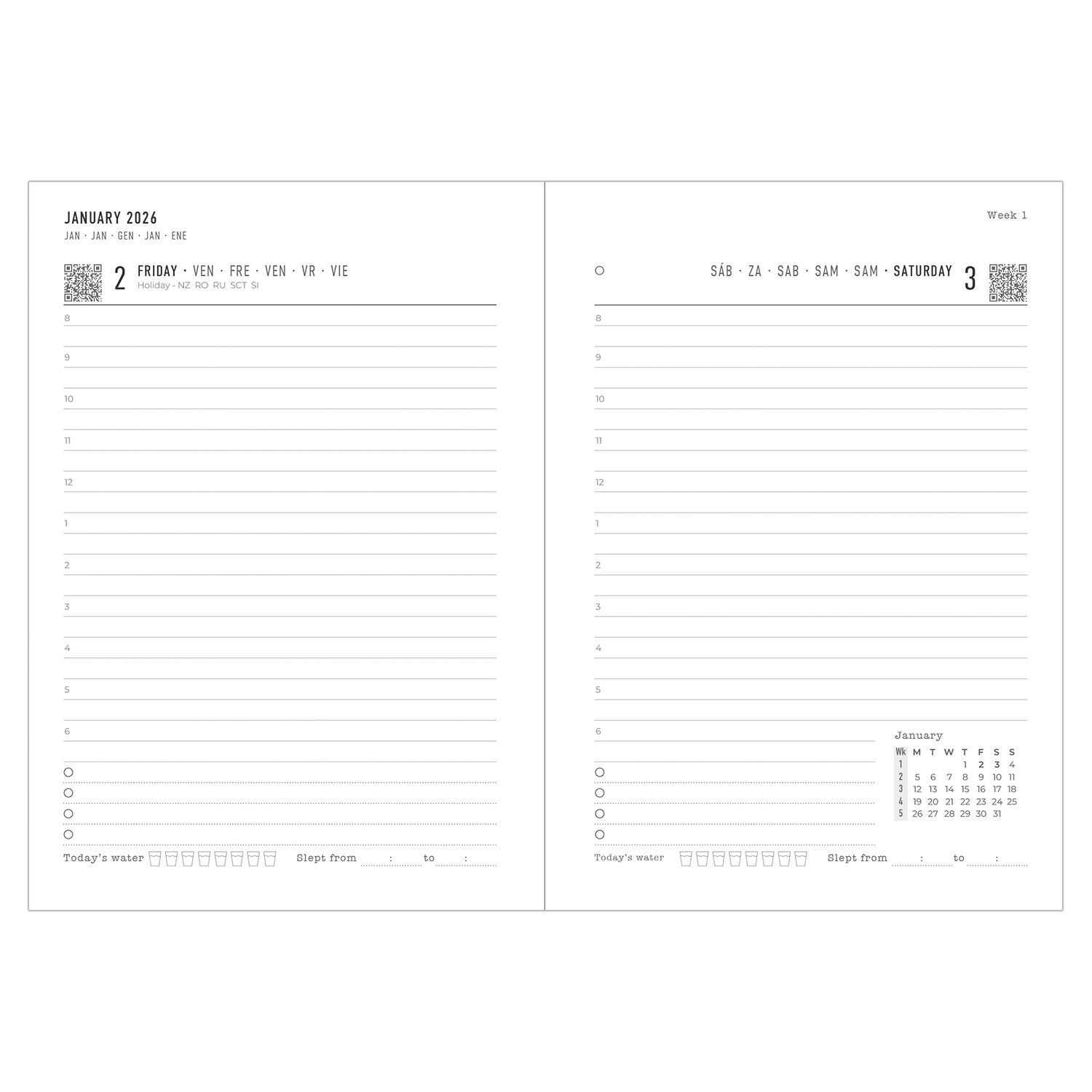 - Page Size (Dimensions W x H): A6 (10.5 x 14.8cm)