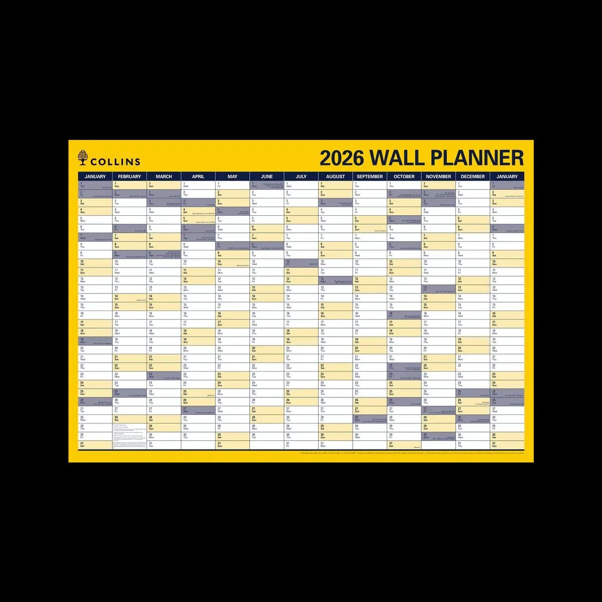 2026 Year Planner Collins Laminated Roll Up 91x70cm Vertical/Horizontal WP900D