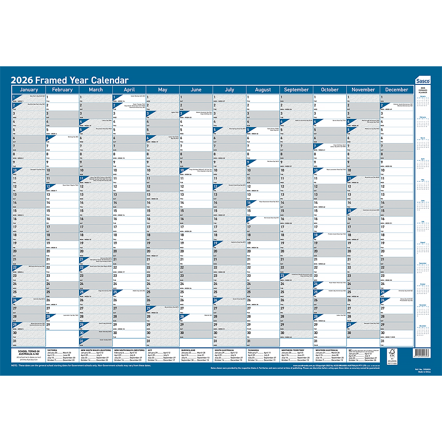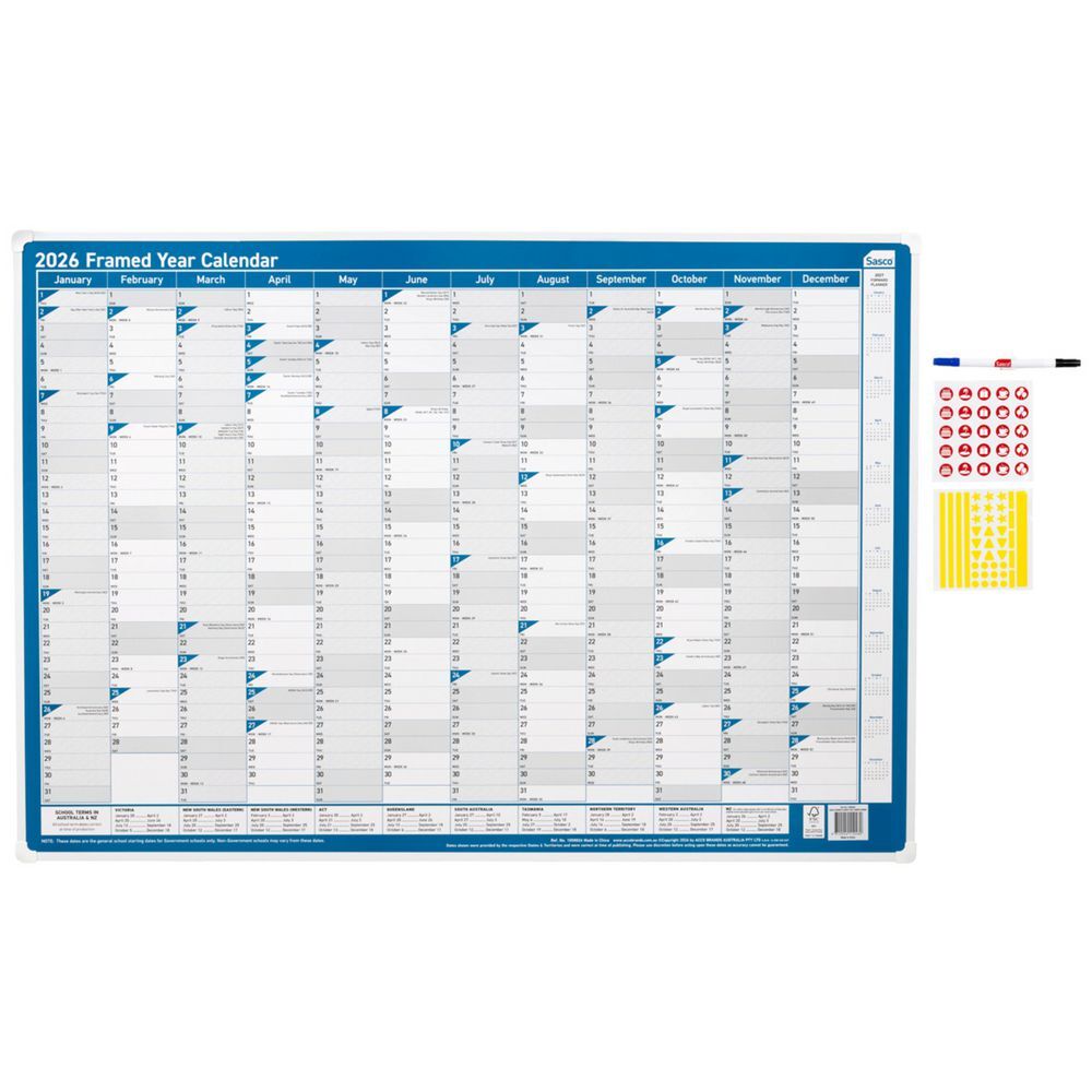Sasco have been helping Australia and New Zealand plan for over 30 years. Over this time, Sasco have built a complete range from small Compact Planners to heavy duty Framed Wall Planners. For those serious about planning, Sasco has a wall planner for you. All products are FSC certified, using materials that are sourced responsibly while still supplying a great quality product you can rely on for all your planning needs. All planners include Australian and New Zealand Holidays.