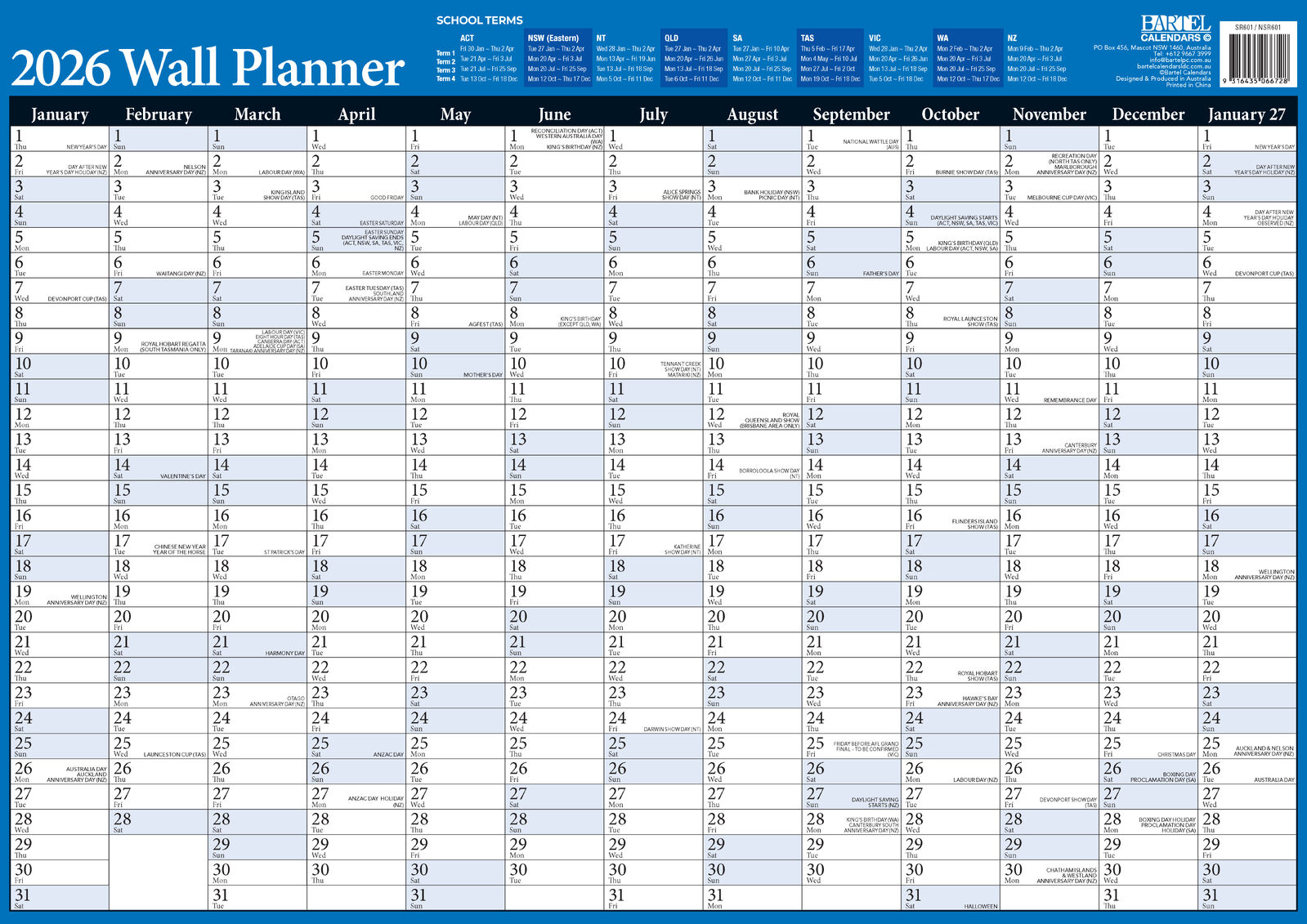 2026 Year Planner with Flags of the World A2 Wall Blue Year Planner, Bartel SR601