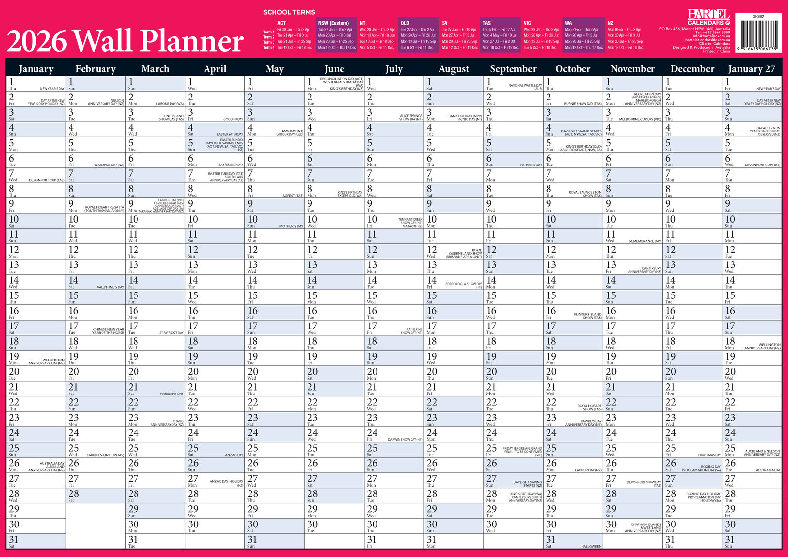 2026 Year Planner with Map of Australia A2 Wall Red Year Planner, Bartel SR602