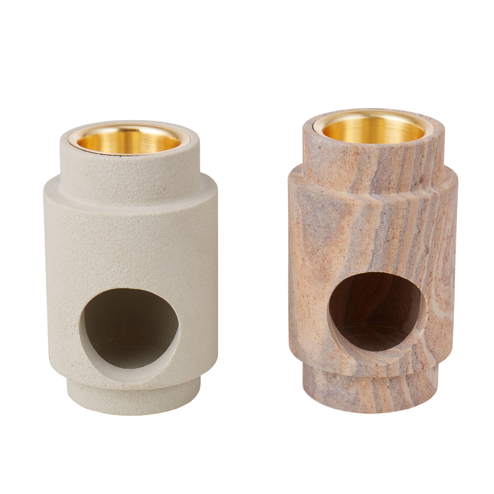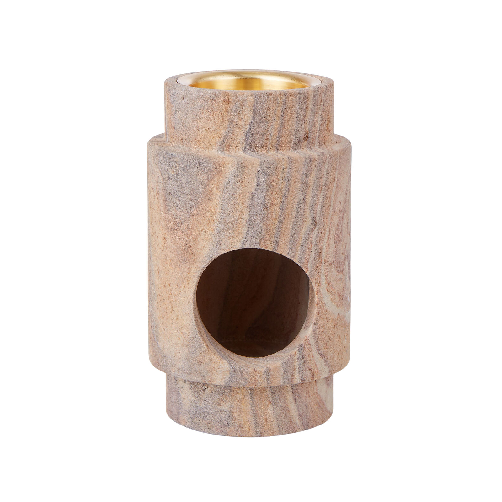 Amalfi Oil Burner 10x10x14cm Sandblasted Sandstone Granite & Brass, isAlbi AMCA13