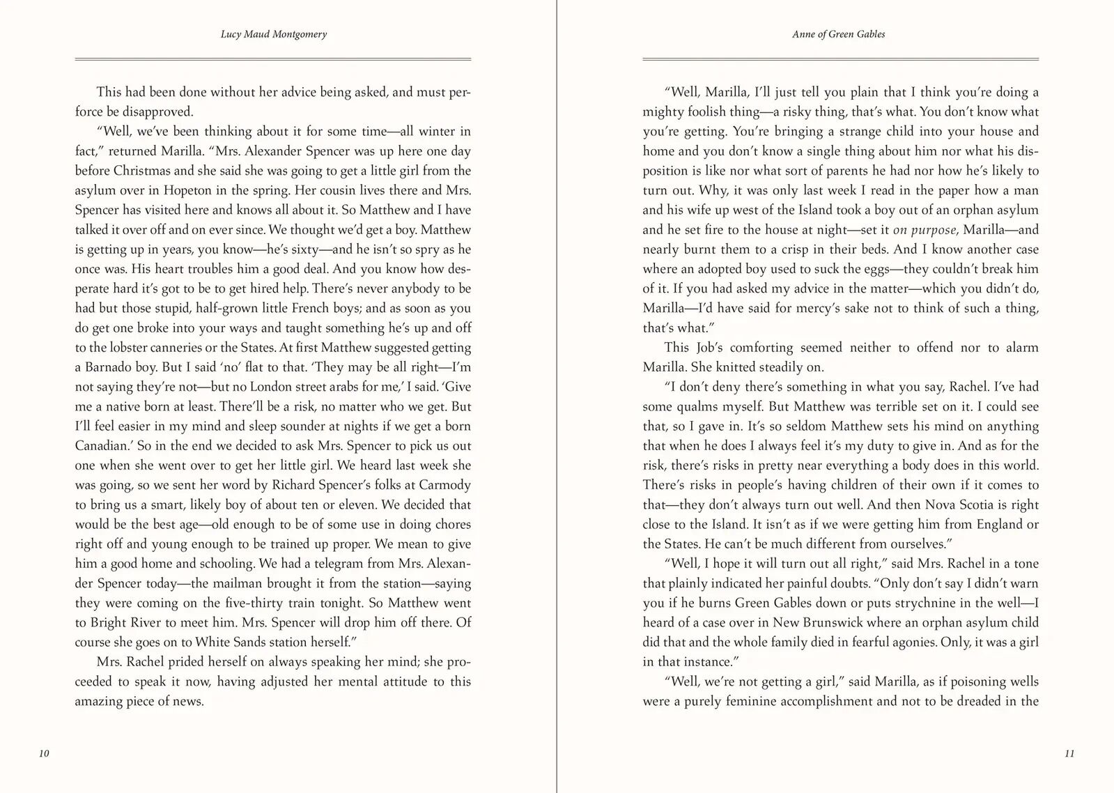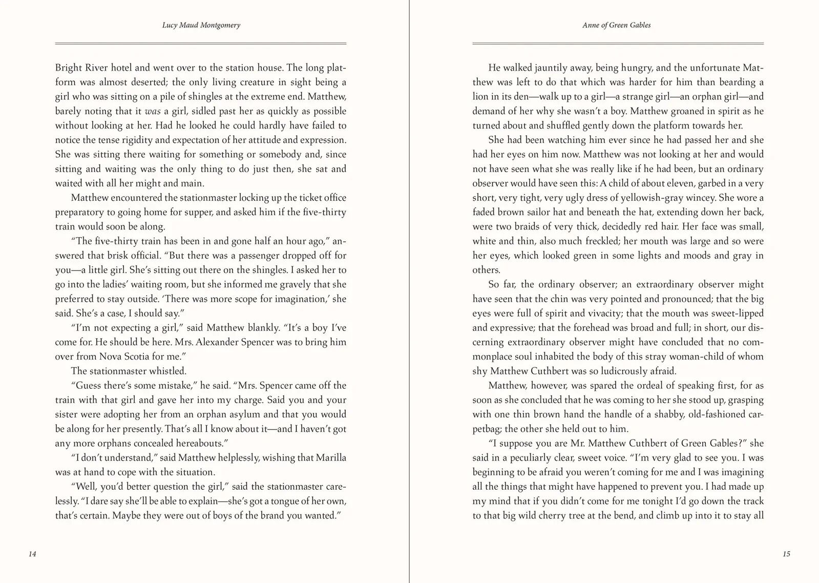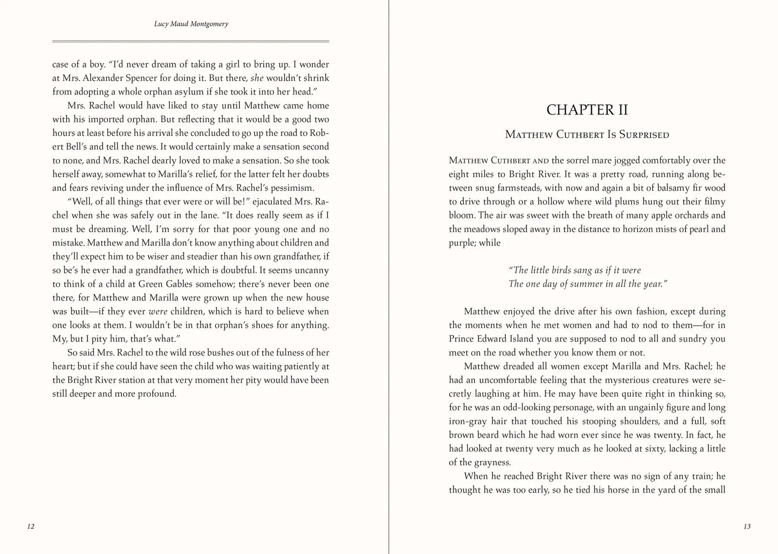 A bright, imaginative orphan wins the hearts of shy Matthew Cuthbert, his stern sister Marilla, and their small town of Avonlea in this timeless coming-of-age tale. Rediscover Lucy Maud Montgomery's treasured classic in this elegant yet affordable Masterpiece Library Edition, honoring the Peter Pauper Press founders' tradition of publishing beautiful books.