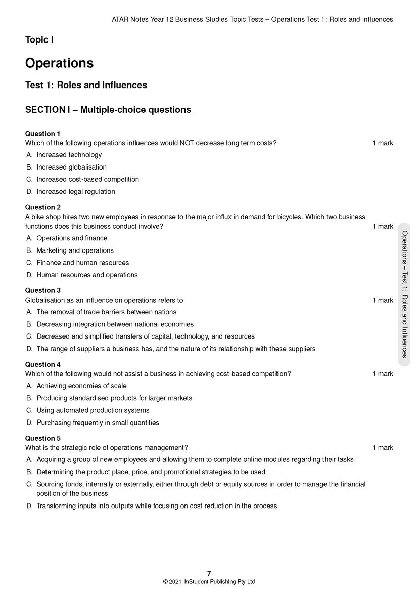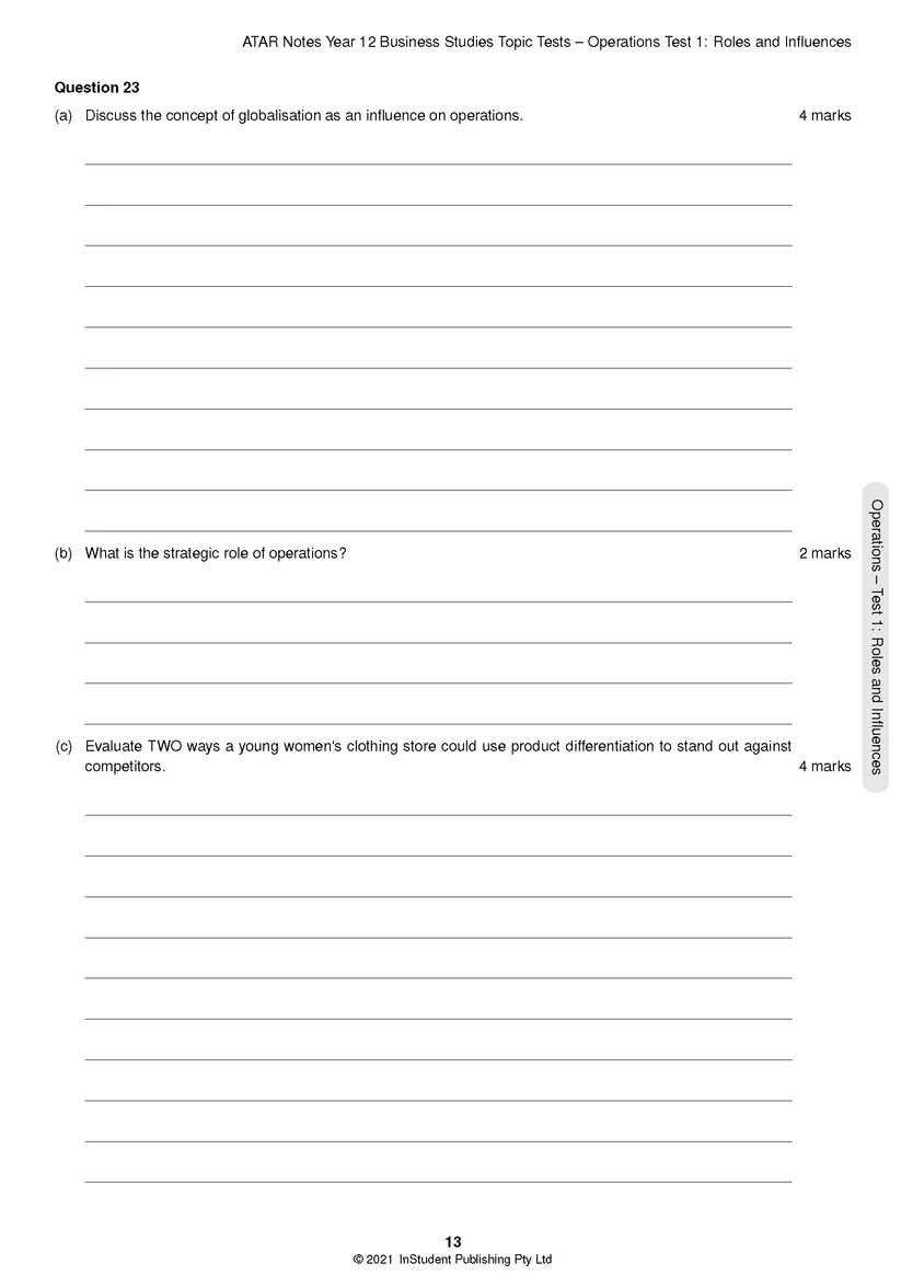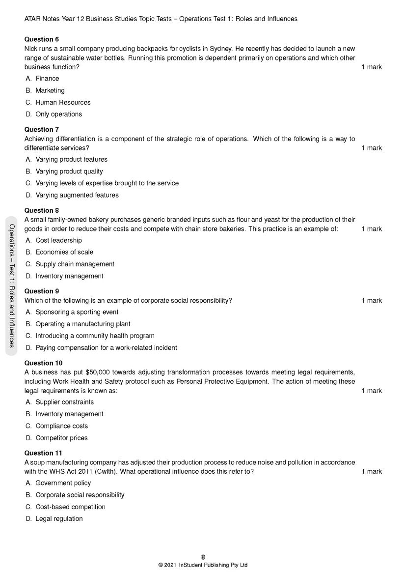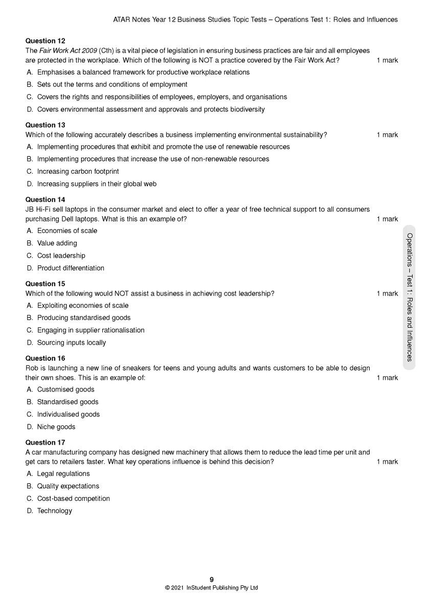 Our HSC Year 12 Business Studies Topic Tests are the best assessment resource you could ask for. This book contains original exam-style questions covering all four topics. Most importantly, each question comes with a detailed solution at the back of the book, showing you exactly what you need to write to attain full marks, as well as advice from two past high-achieving students to help you refine both your knowledge and your test-taking skills.