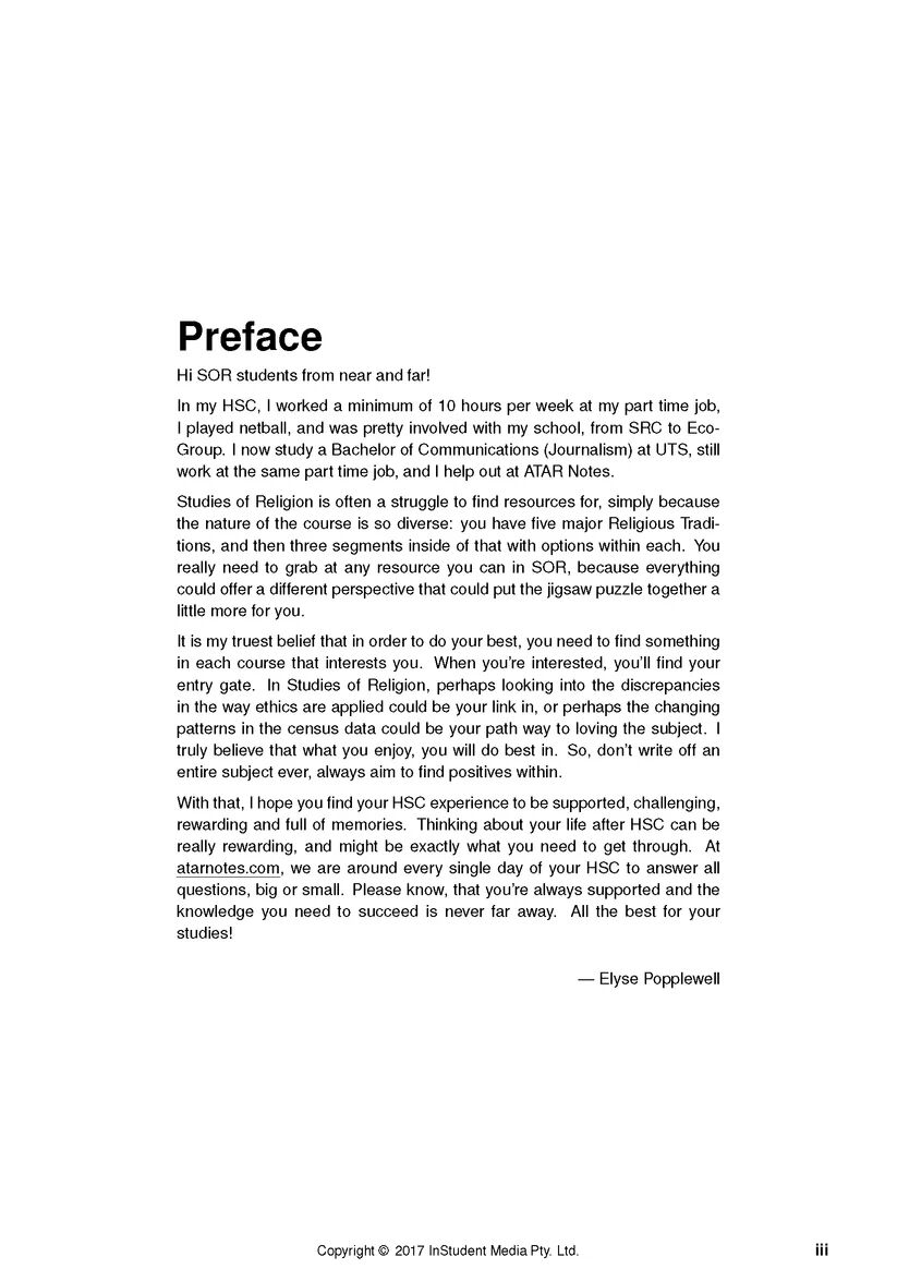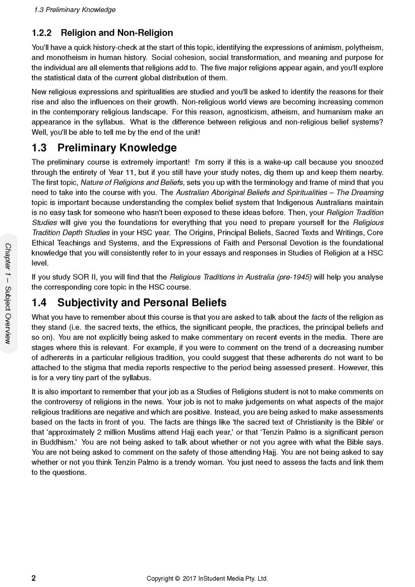 These Notes summarise the entire Studies of Religion course including the Core content and all five Religious Traditions Depth Studies (Buddhism, Christianity, Hinduism, Islam, and Judaism). You will also find plenty of great advice from a past high-achieving student who knows what it takes to excel in SOR. With plenty of sacred text evidence, tips for remembering key information, and guidelines for maximising your marks in exam questions, these Notes will give you a unique advantage in all of your assessment tasks.