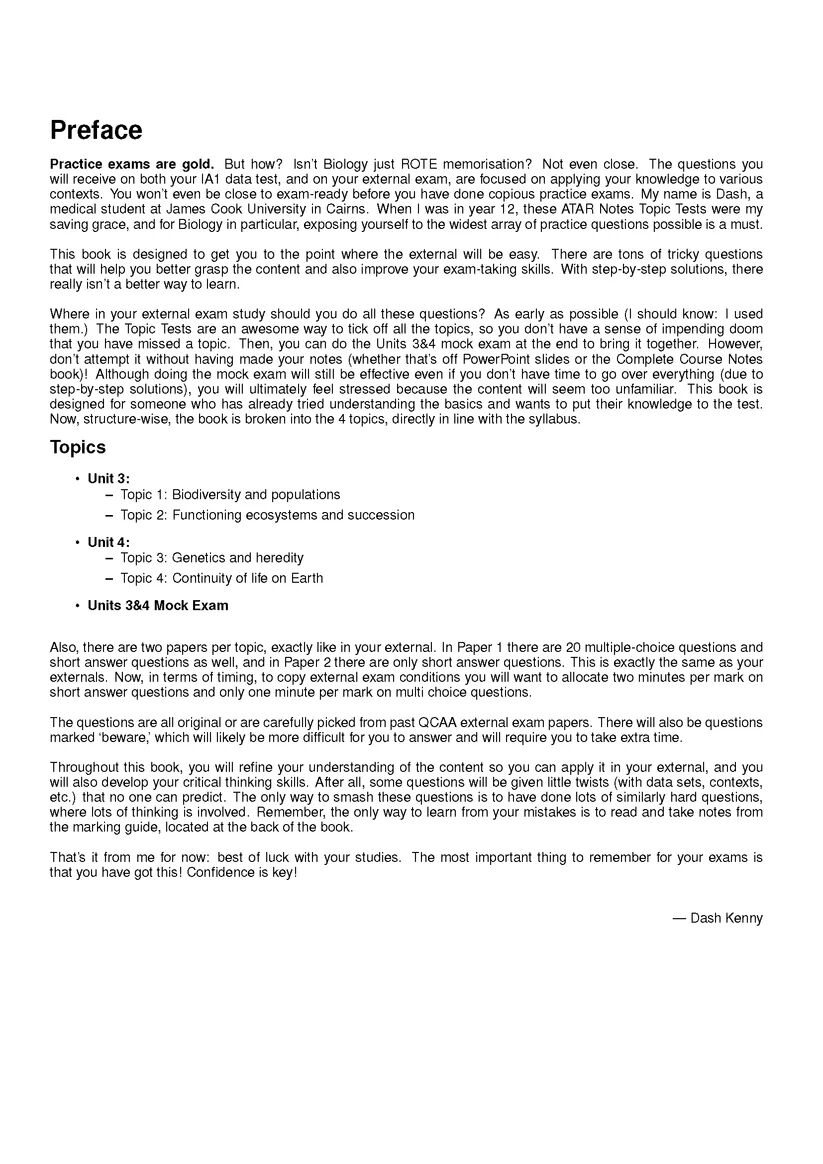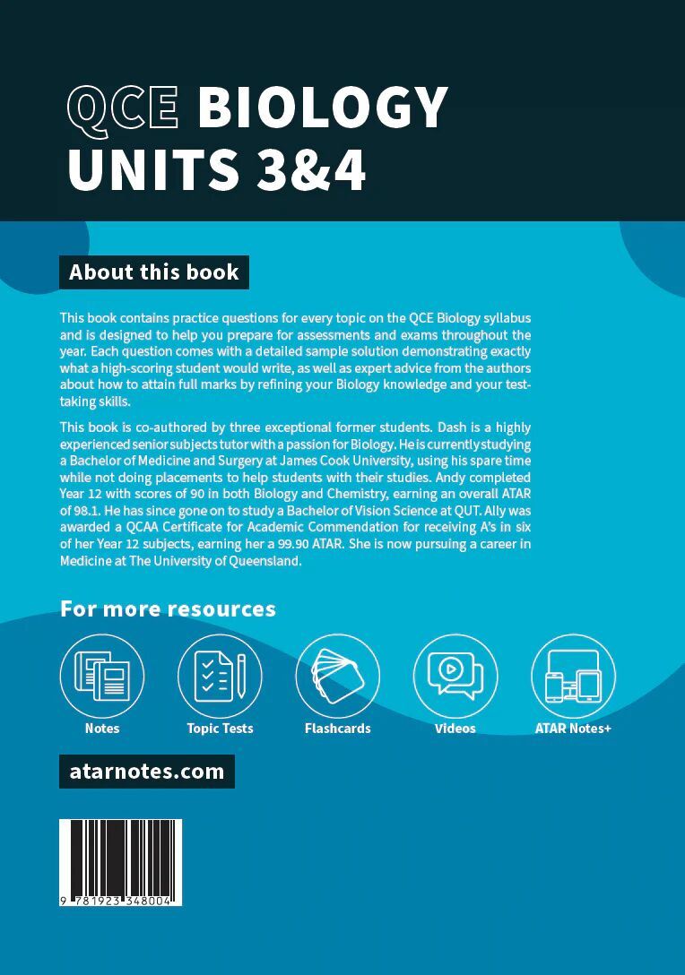 This book contains practice questions for every topic on the QCE Biology syllabus and is designed to help you prepare for assessments and exams throughout the year. Each question comes with a detailed sample solution demonstrating exactly what a high-scoring student would write, as well as expert advice from the authors about how to attain full marks by refining your Biology knowledge and your test-taking skills.