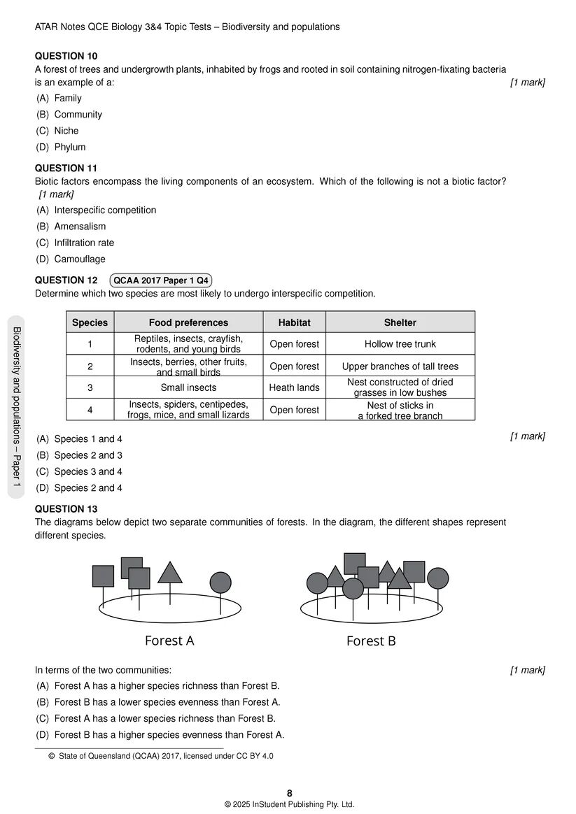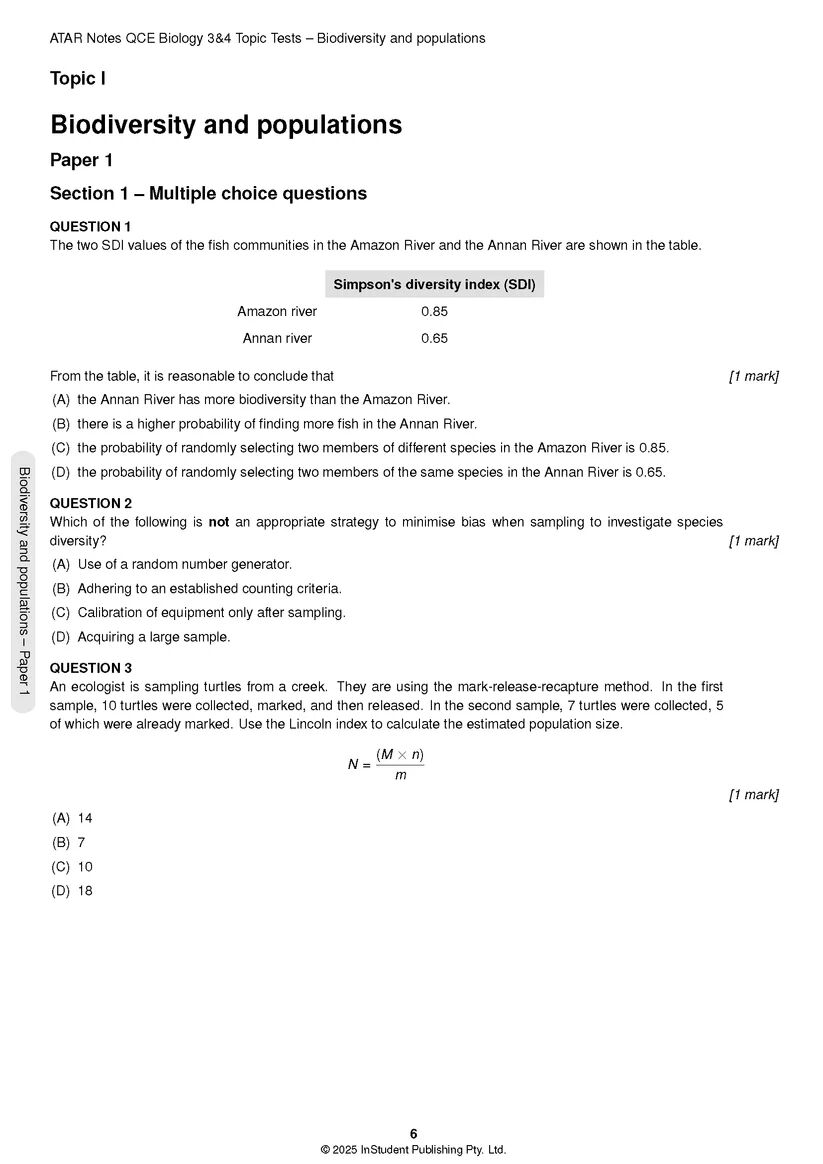 ATAR Notes QCE Biology 3&4 Topic Tests (2026-2028)