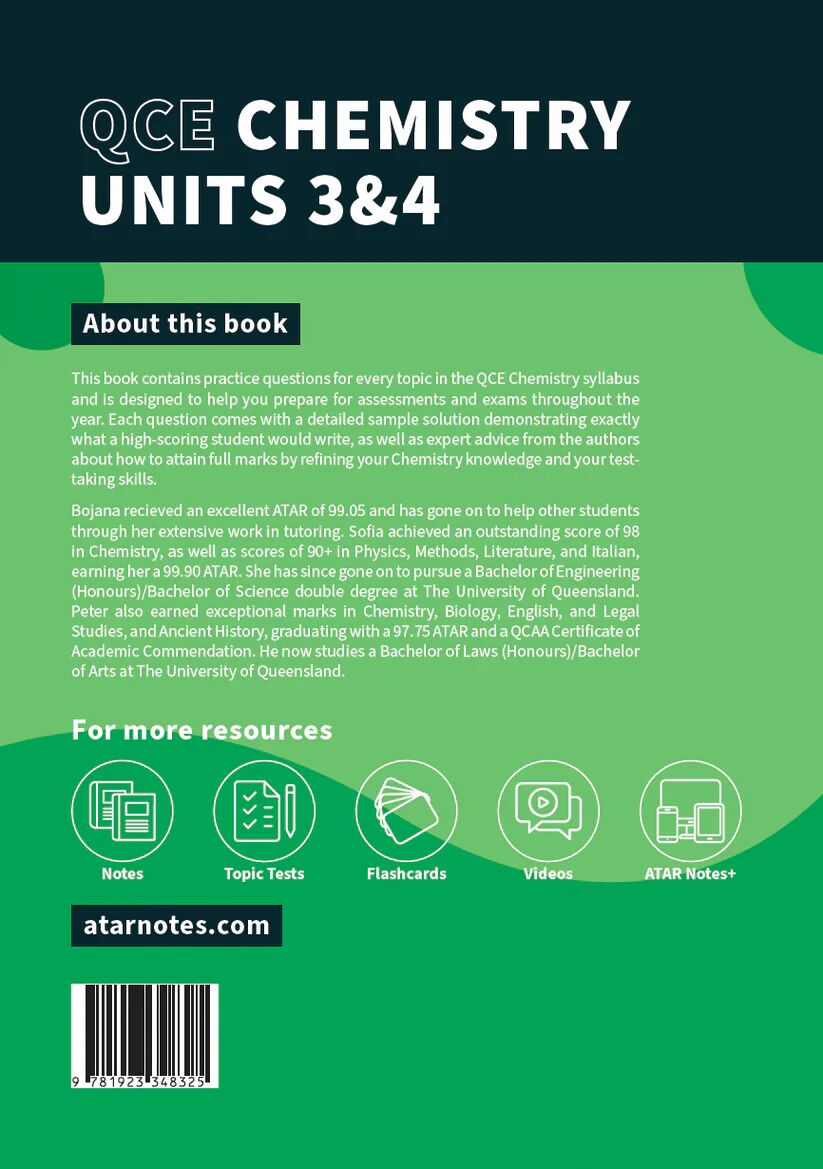 This book contains practice questions for every topic in the QCE Chemistry syllabus and is designed to help you prepare for assessments and exams throughout the year. Each question comes with a detailed sample solution demonstrating exactly what a high scoring student would write, as well as expert advice from the authors about how to attain full marks by refining your Chemistry knowledge and your test-taking skills.