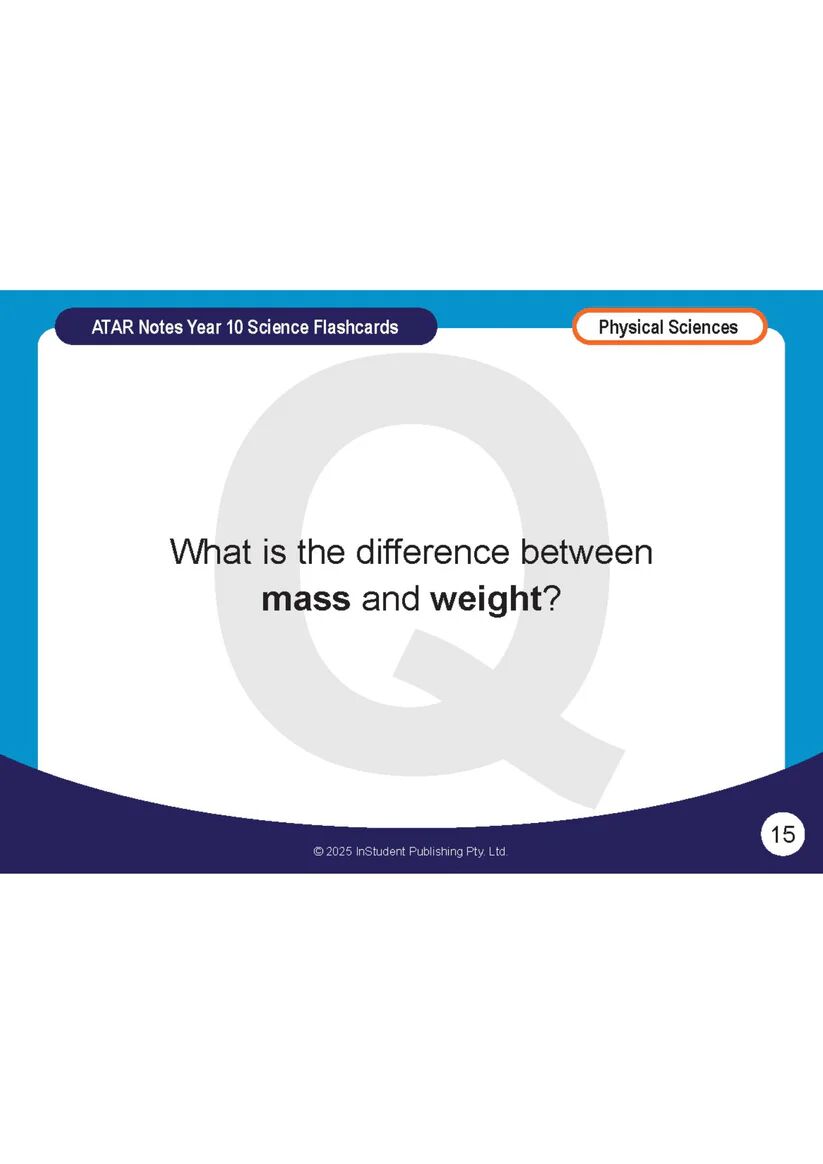 Meet your favourite new study tool and get ahead on your revision with the ATAR Notes Flashcards! Every subject has content you need to memorise, and that's definitely true for Science. This subject has a lot to learn, which is why we've done the hard work for you to collate and condense the most important information into a set of Flashcards. Each card is specifically written for the Australian National Curriculum (v9.0) and designed to aid your learning through targeted questions and carefully curated answers.