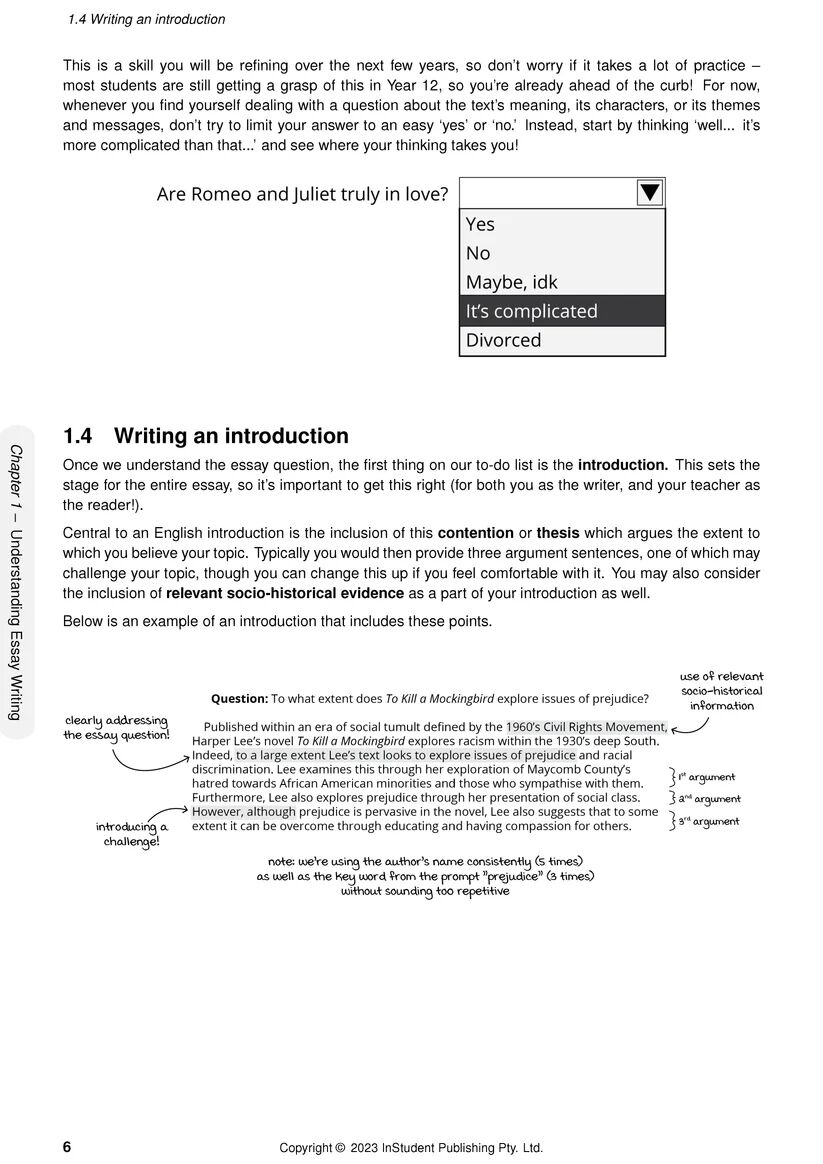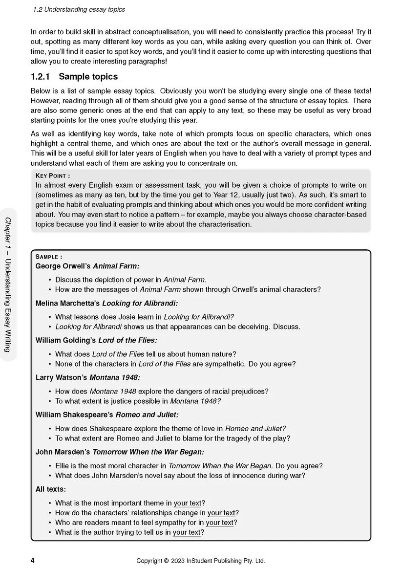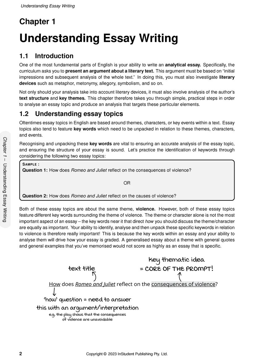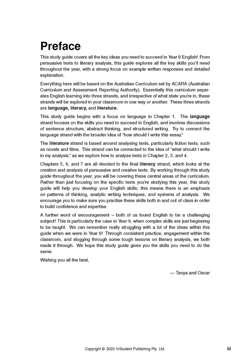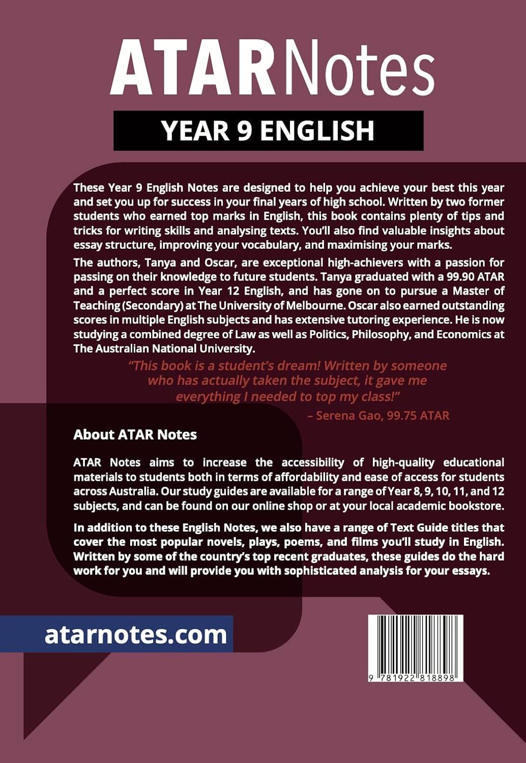 These Year 9 English Notes are designed to help you achieve your best this year, and set you up for success in your final years of high school. Written by two former students who earned top marks in English, this book contains plenty of tips and tricks for writing skills and analysing texts. You'll also find valuable insights about essay structure, improving your vocabulary, and maximising your marks.