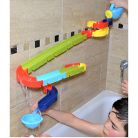Build a winding, twisty race track with bright and vibrant pieces and watch the balls race their way down the watery track with Bath Time Marble Run.