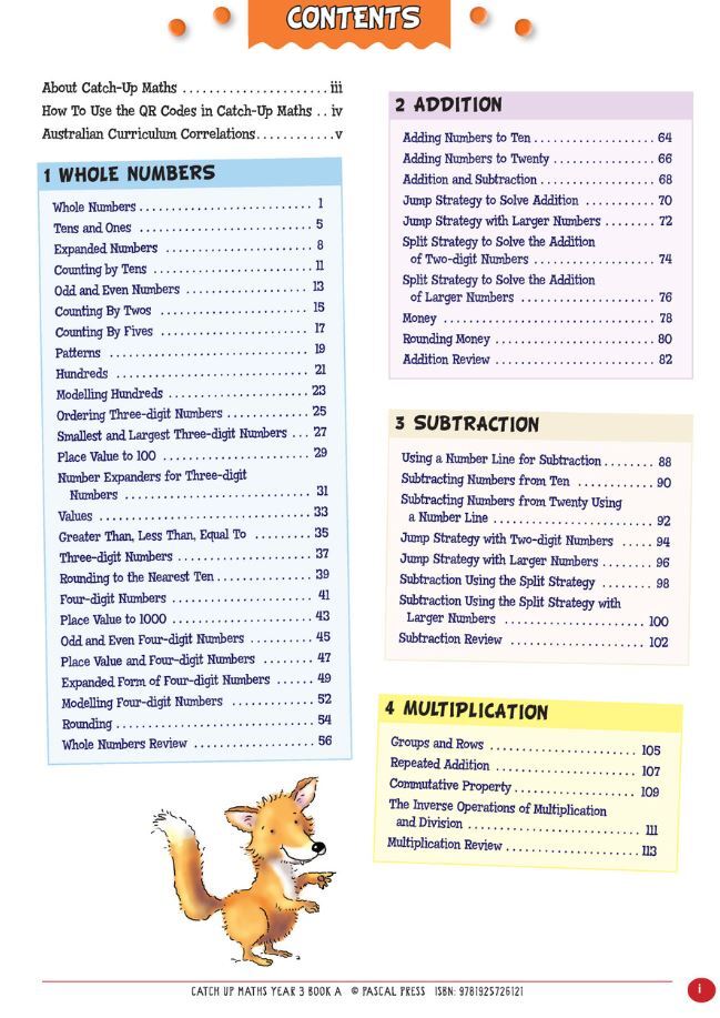 CATCH-UP MATHS is written for students struggling with their year-level maths. It takes maths topics back to the foundation and ensures that all basic concepts are consolidated. Lots of revision and opportunities to practise and build confidence are offered, before moving on to new concepts. Fully aligned to the Australian Curriculum.